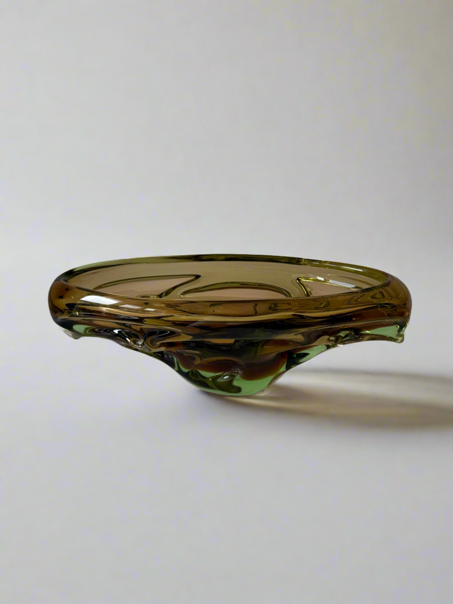 A striking 1960s Sommerso art glass bowl, featuring rich layered hues and masterful Italian craftsmanship. With its fluid form and vibrant depth, this piece captures the essence of mid-century elegance, both sculptural and functional.