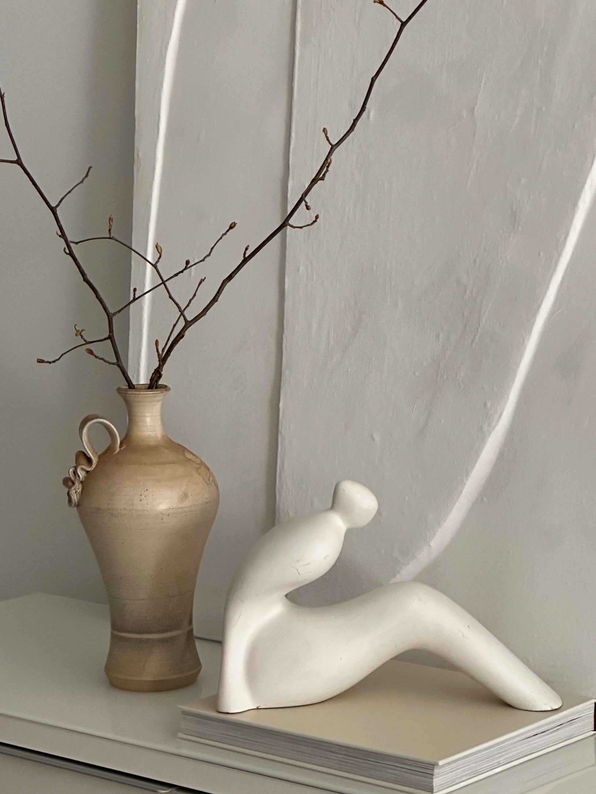 This piece showcases clean lines and smooth curves evoke a sense of elegance and sophistication, while its abstract form invites interpretation. Whether displayed as a standalone statement piece or integrated into a curated collection, this sculpture is sure to inspire admiration.
