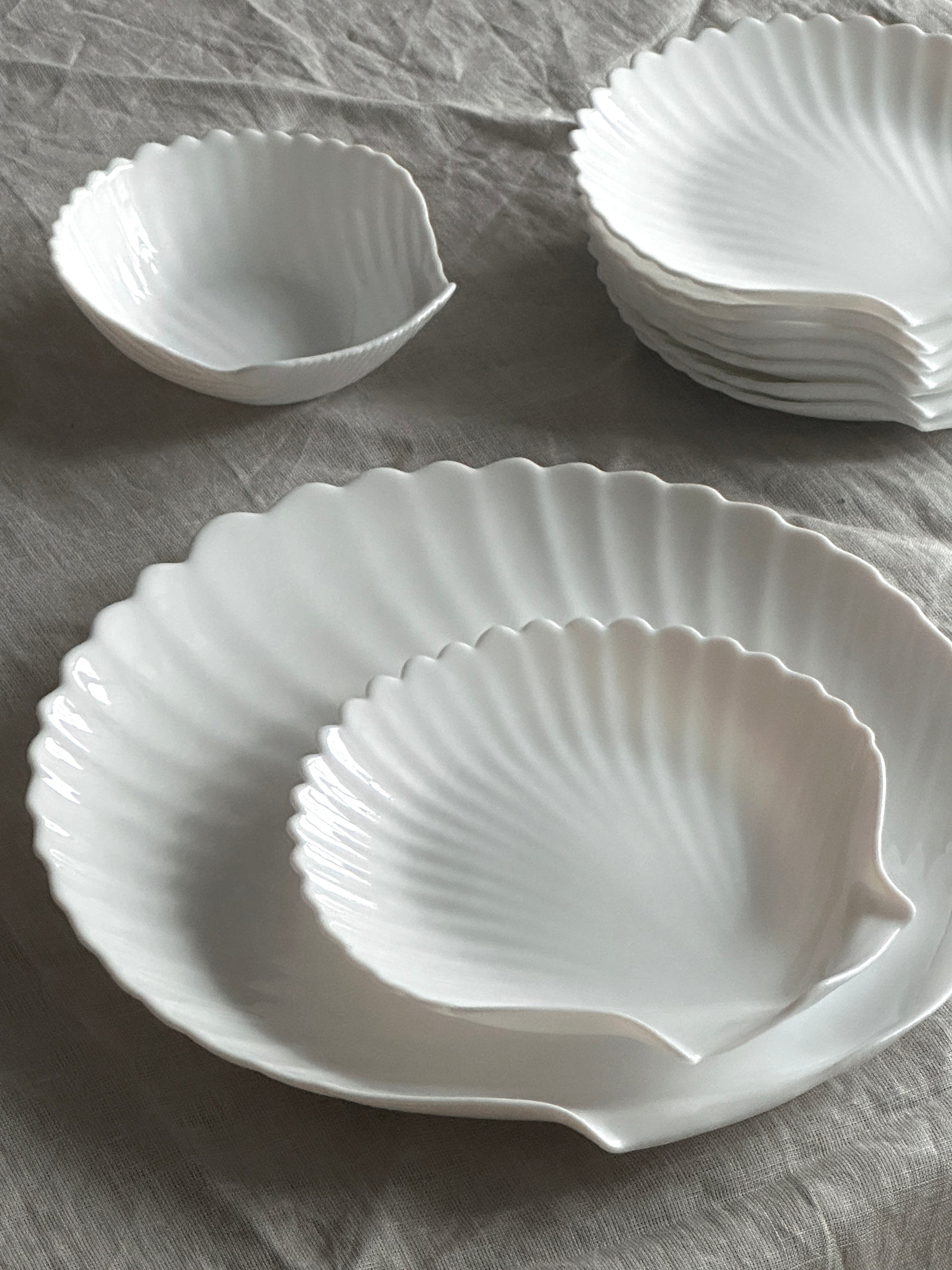Arcoroc White Glass Seashell Plate Set (10 PC)