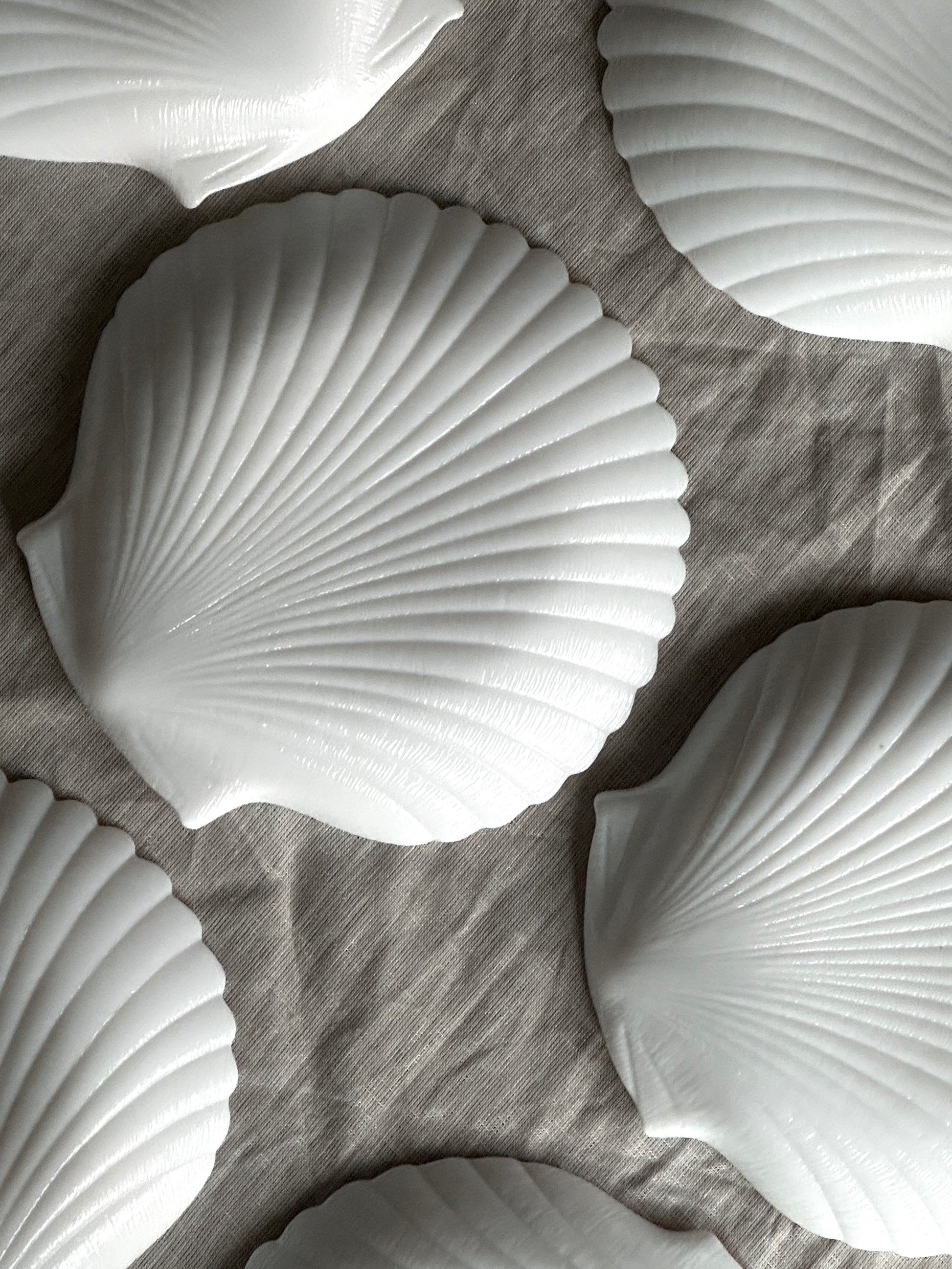 This set features a delicate seashell motif and are perfect for serving appetizers, desserts, or small bites with style.