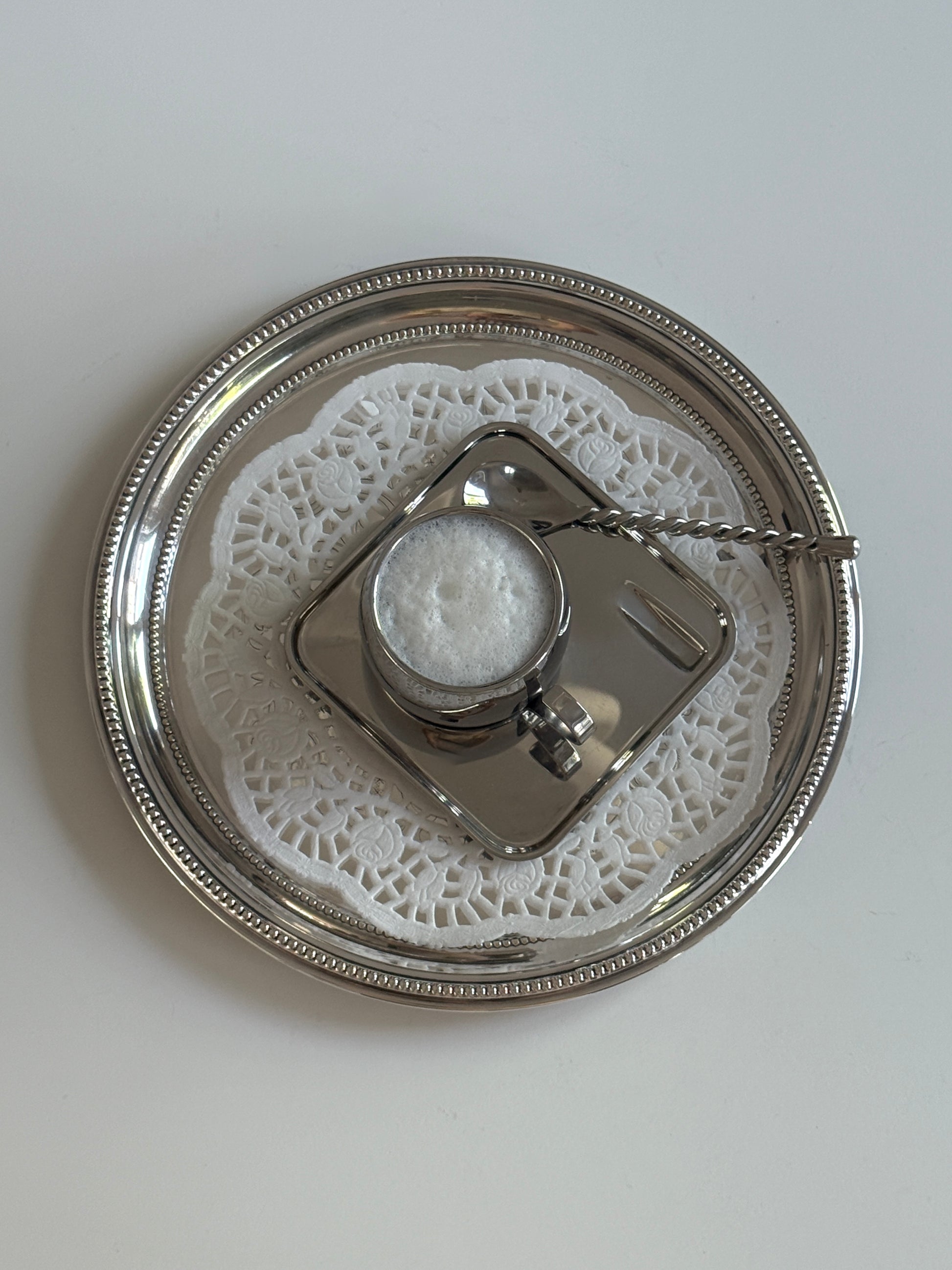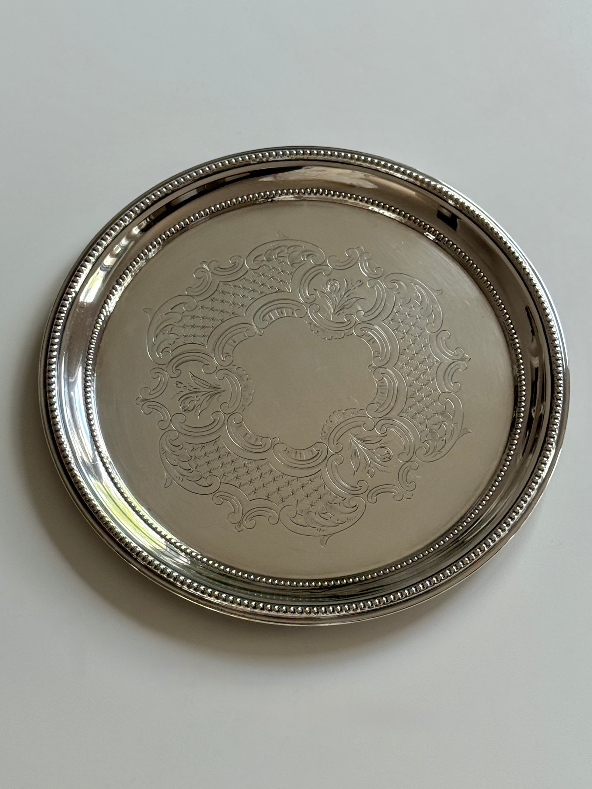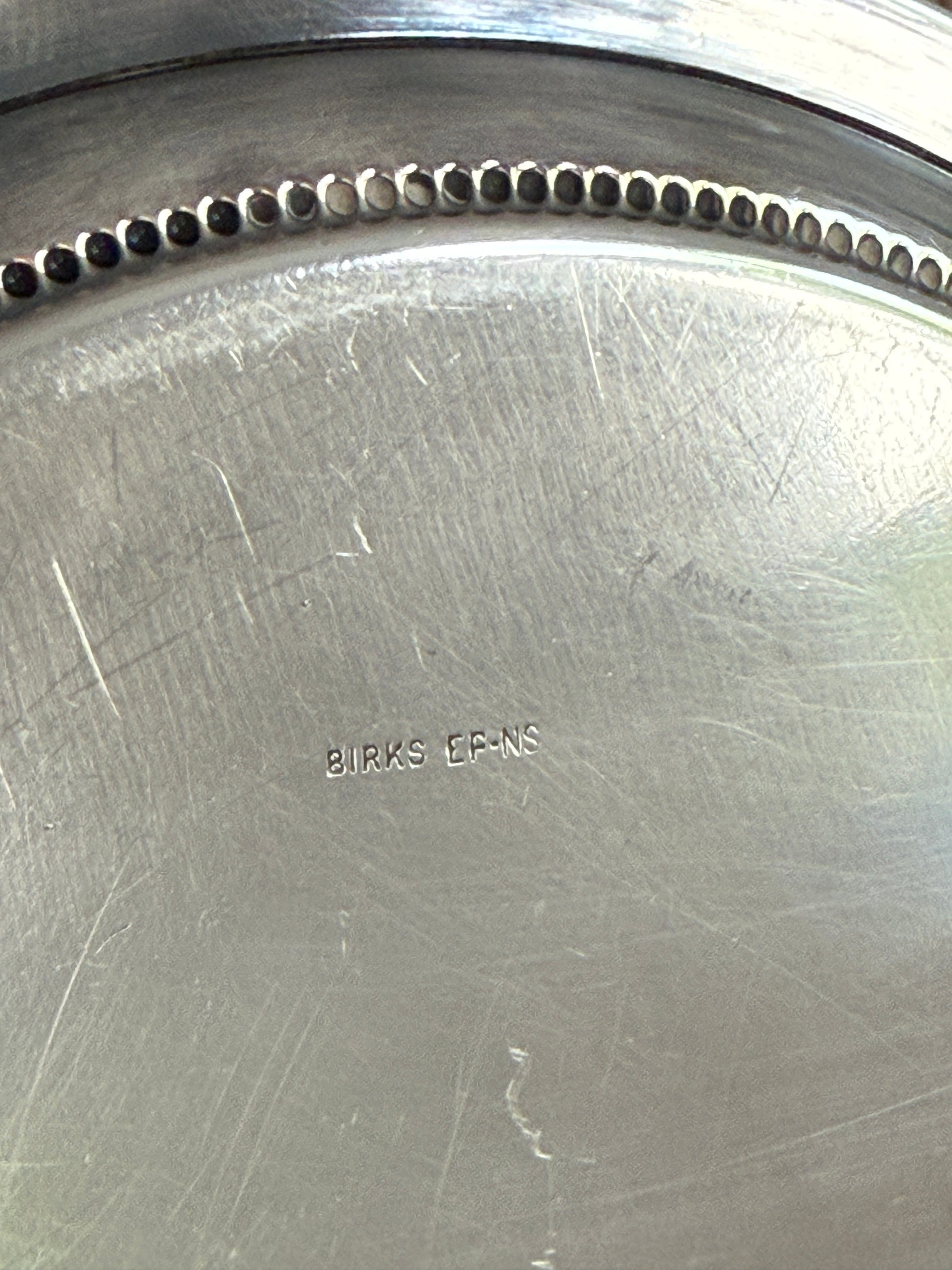 Timeless and refined, this round silver-plated tray by BIRKS features a sleek silhouette and polished finish—perfect for serving, styling, or adding a touch of classic elegance to any setting.