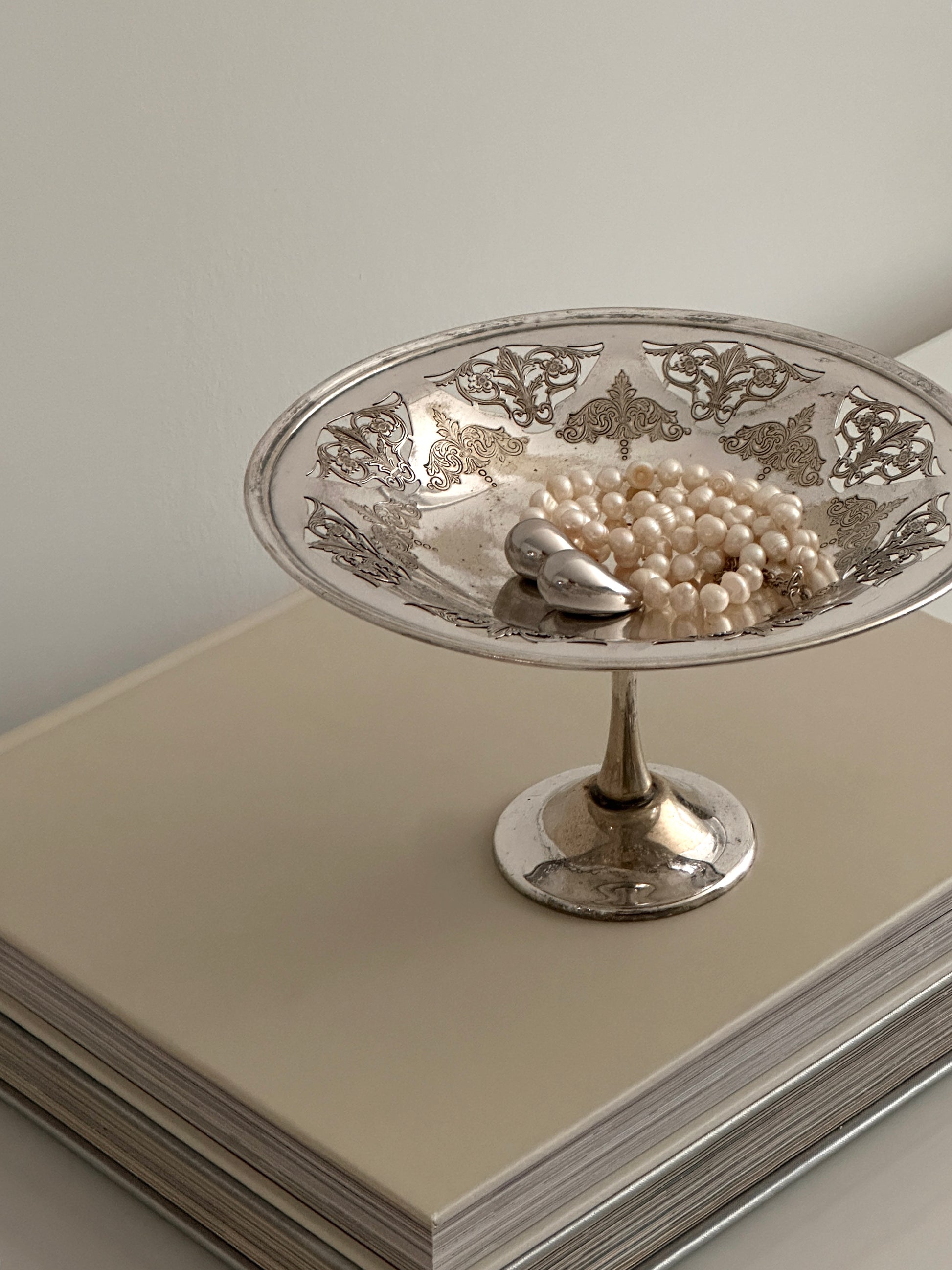 This exquisite Birks bowl features a classic pedestal design, adorned with intricate detailing that adds a touch of luxury to any setting.