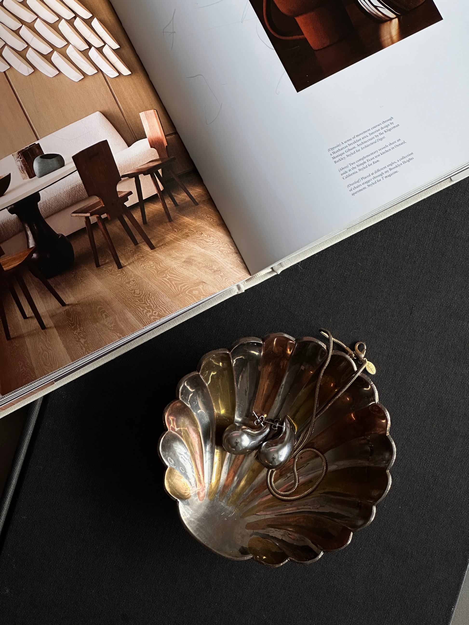 With shimmering gold, silver, and bronze tones, this unique shell-shaped dish adds whimsy and sophistication to tables and surfaces. Whether displayed on its own or used as a functional piece for holding trinkets or jewelry it effortlessly enhances the ambiance of coastal-inspired decor themes.