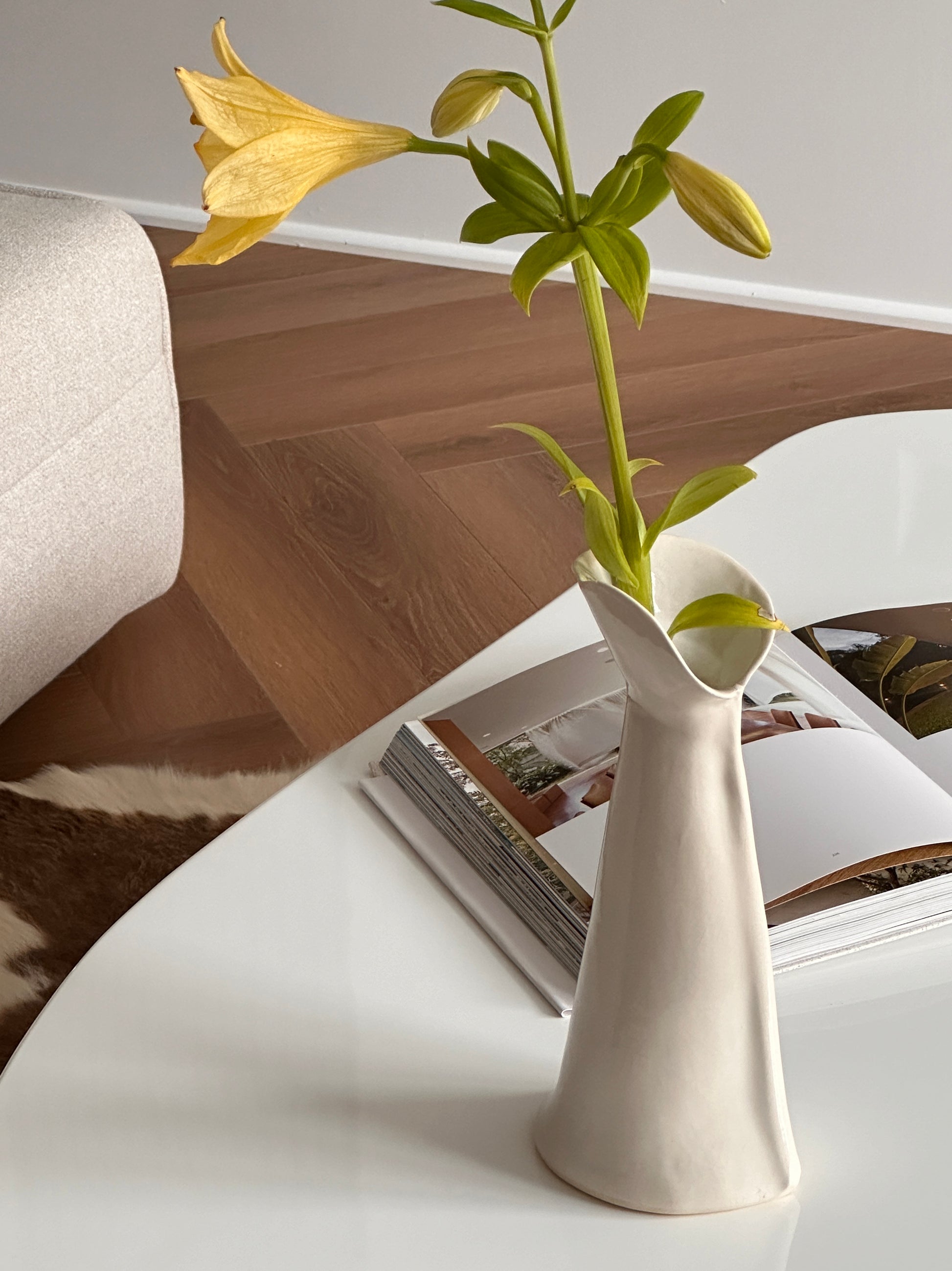 Add organic elegance to your space with this freeform ceramic vase. Hand-shaped with unique curves and a natural glaze, it complements fresh flowers or stands alone as an artistic accent. Perfect for modern or minimalist interiors.