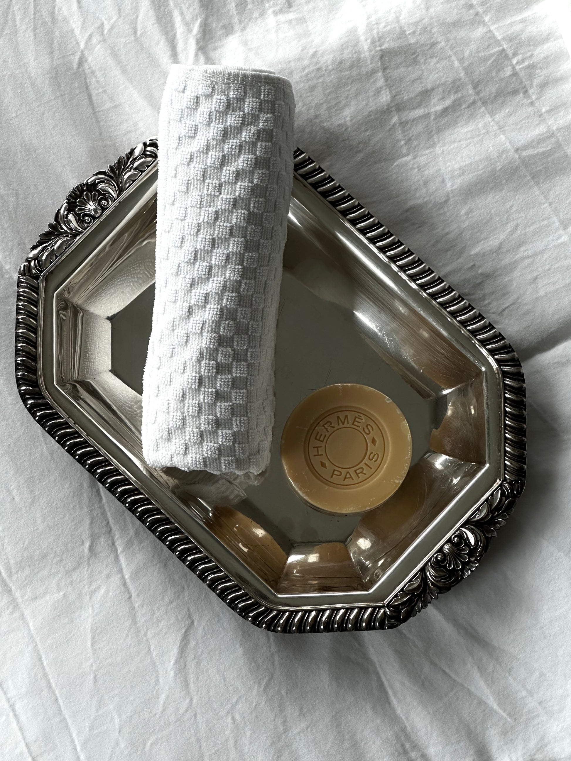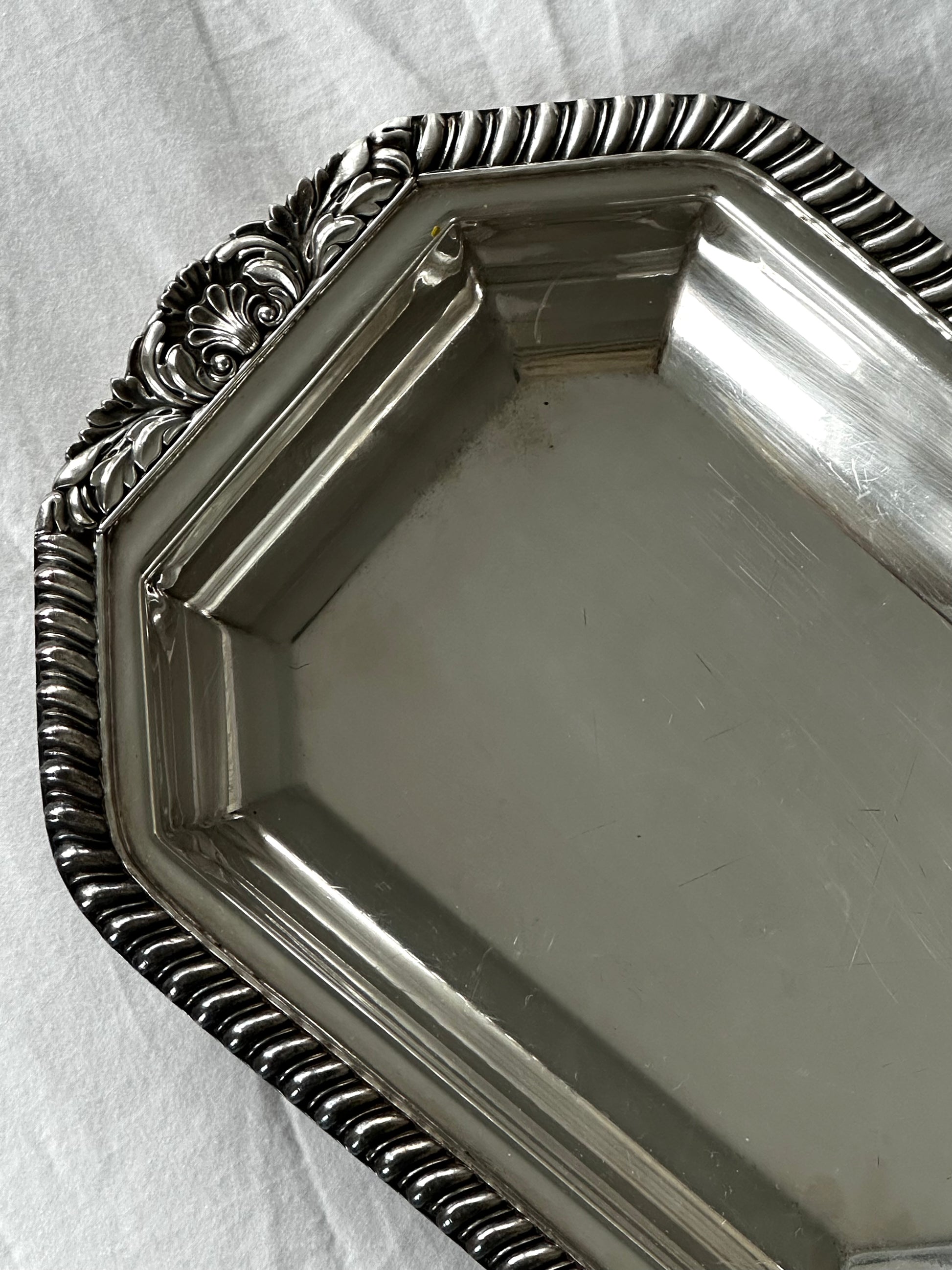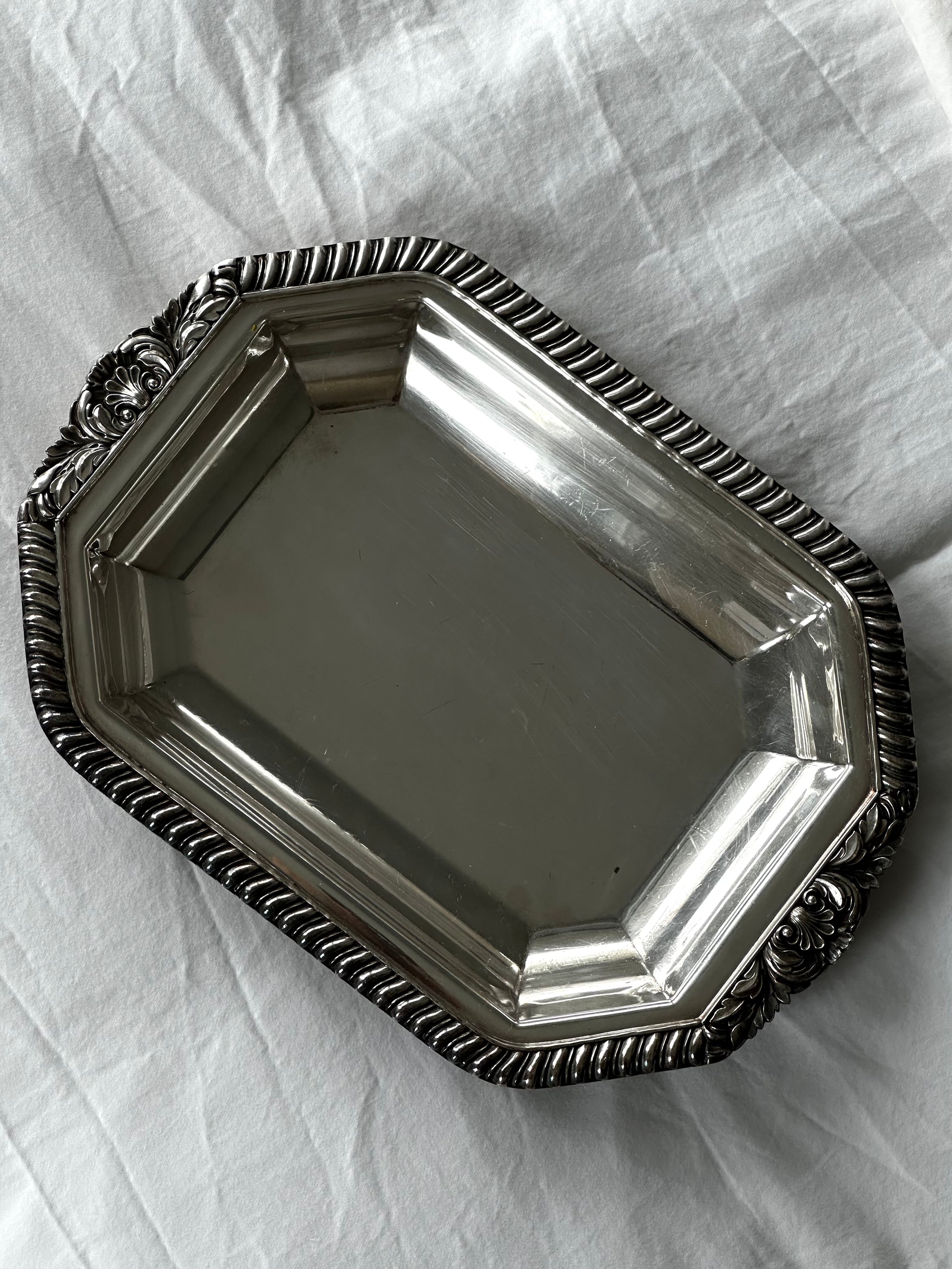This rectangular shape bowl/tray exudes timeless elegance with its silver-plated finish. Elevate your space by using it as a decorative tray in your bathroom or for multiple purposes throughout your home.