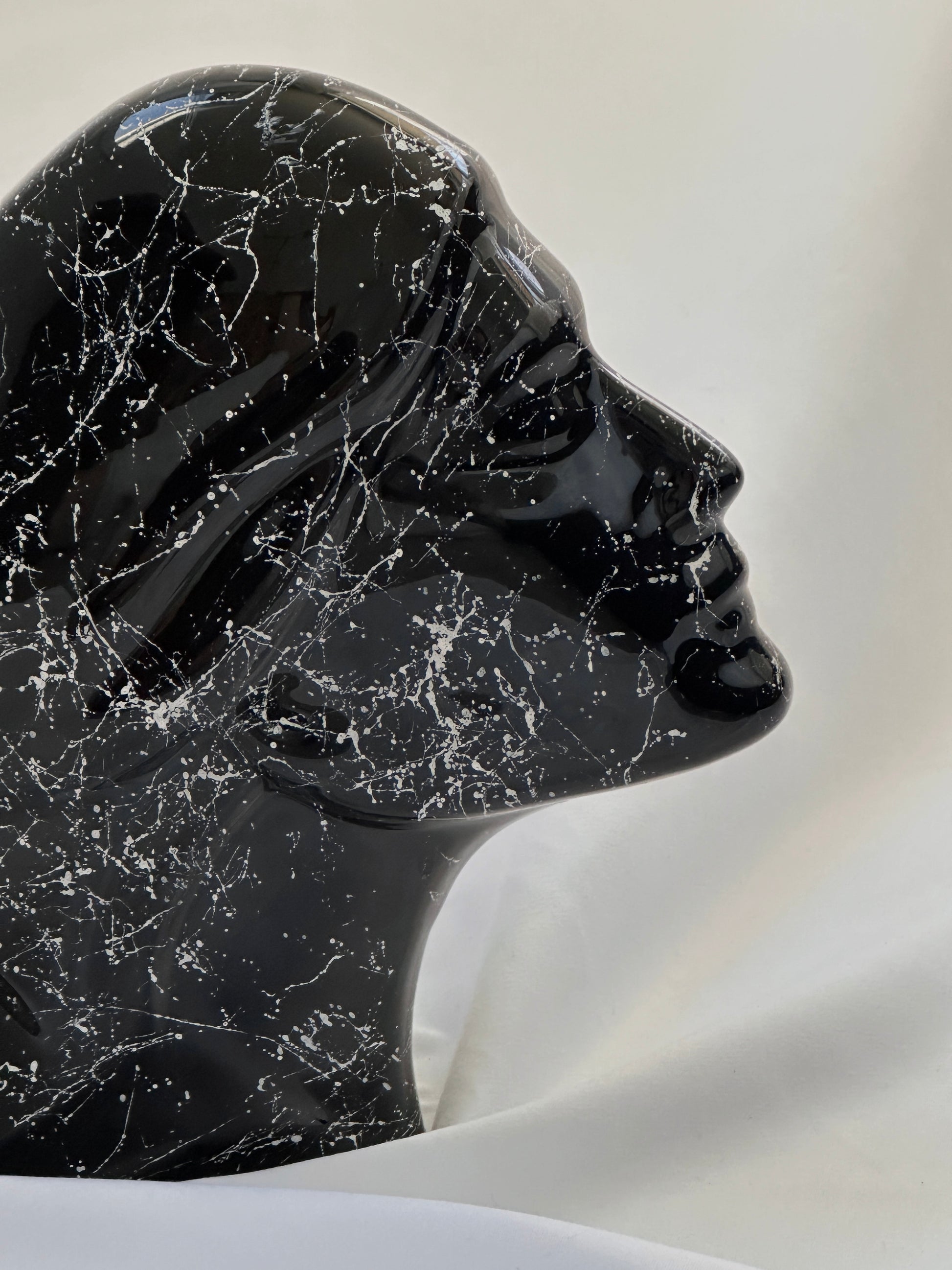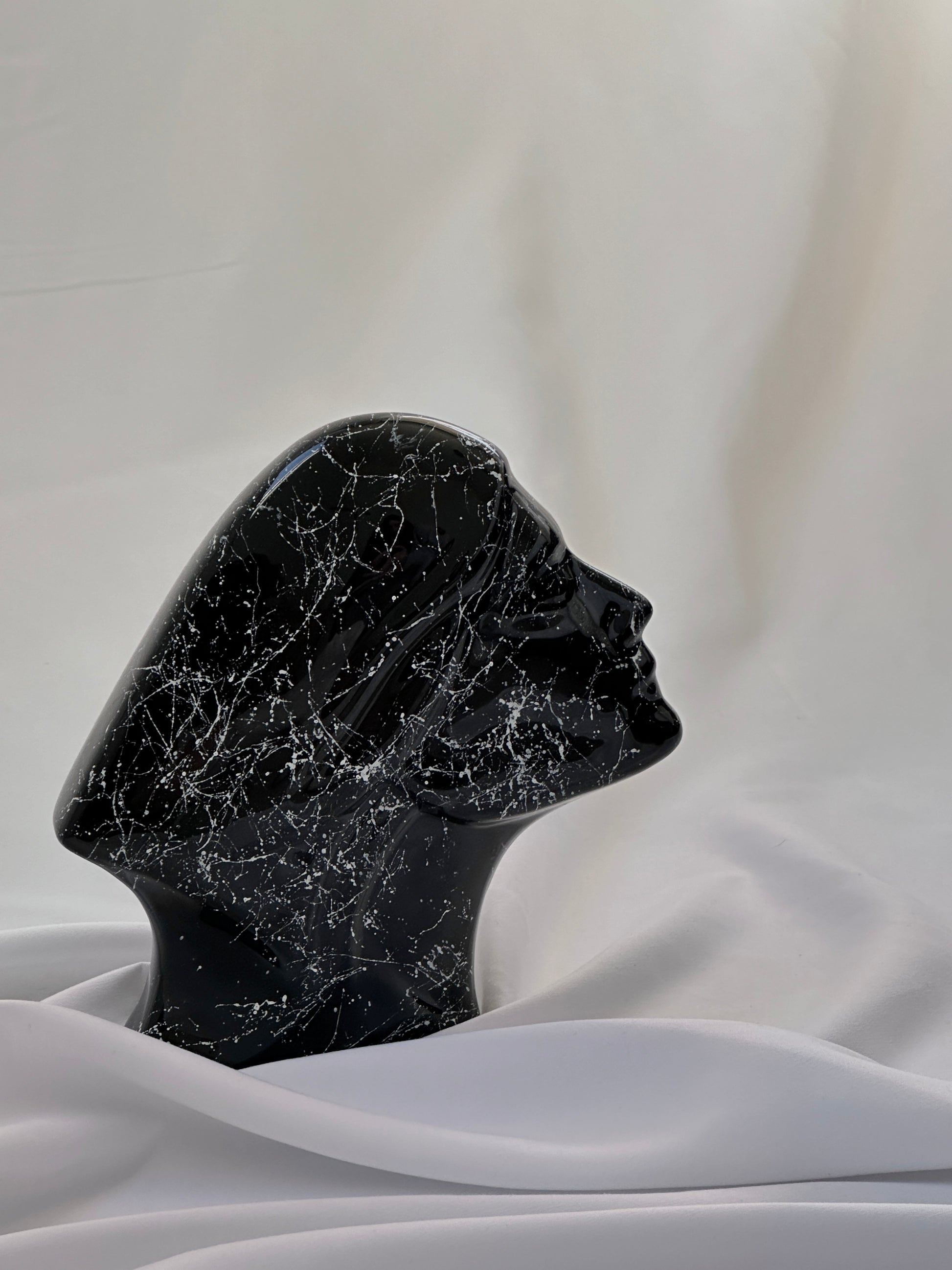 This captivating Face Statue from the 1980s exudes an exquisite Art Deco style, characterized by its sleek lines and geometric forms. The minimalist yet expressive design captures the essence of the era, making it a striking focal point for any contemporary space.