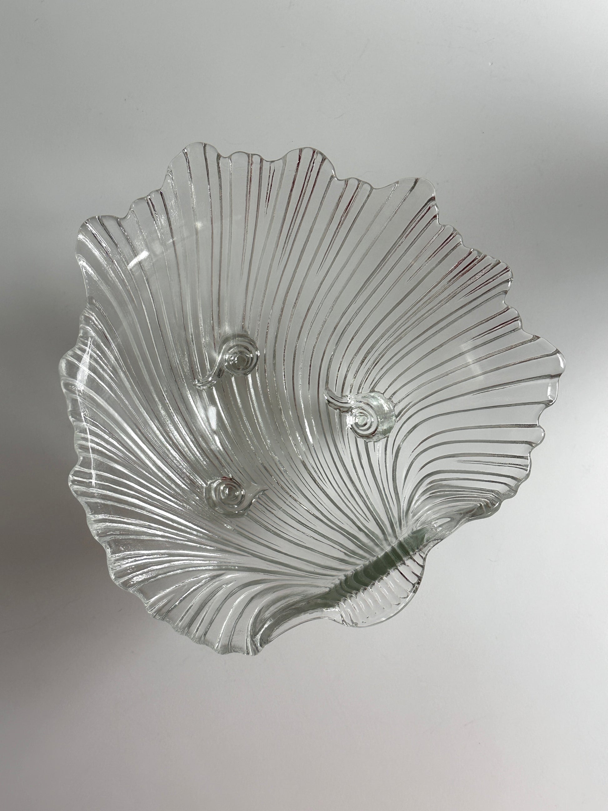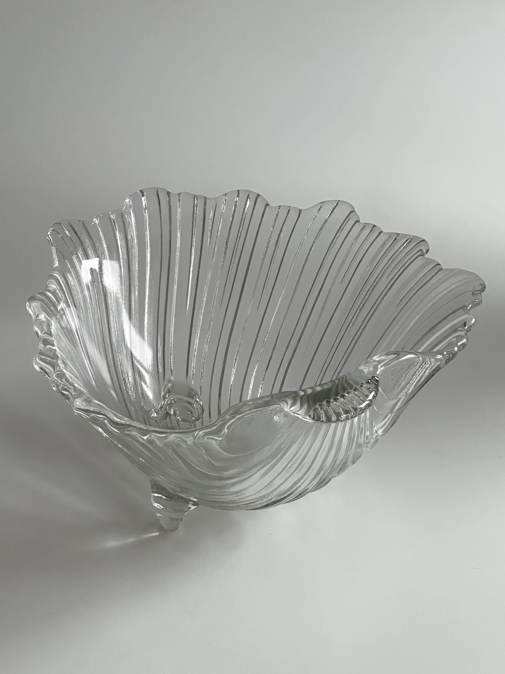Enhance your home with this stunning crystal shell-shaped bowl. Perfect for serving fruit, salad or as a decorative centerpiece, its timeless design and footed base add sophistication to any space.