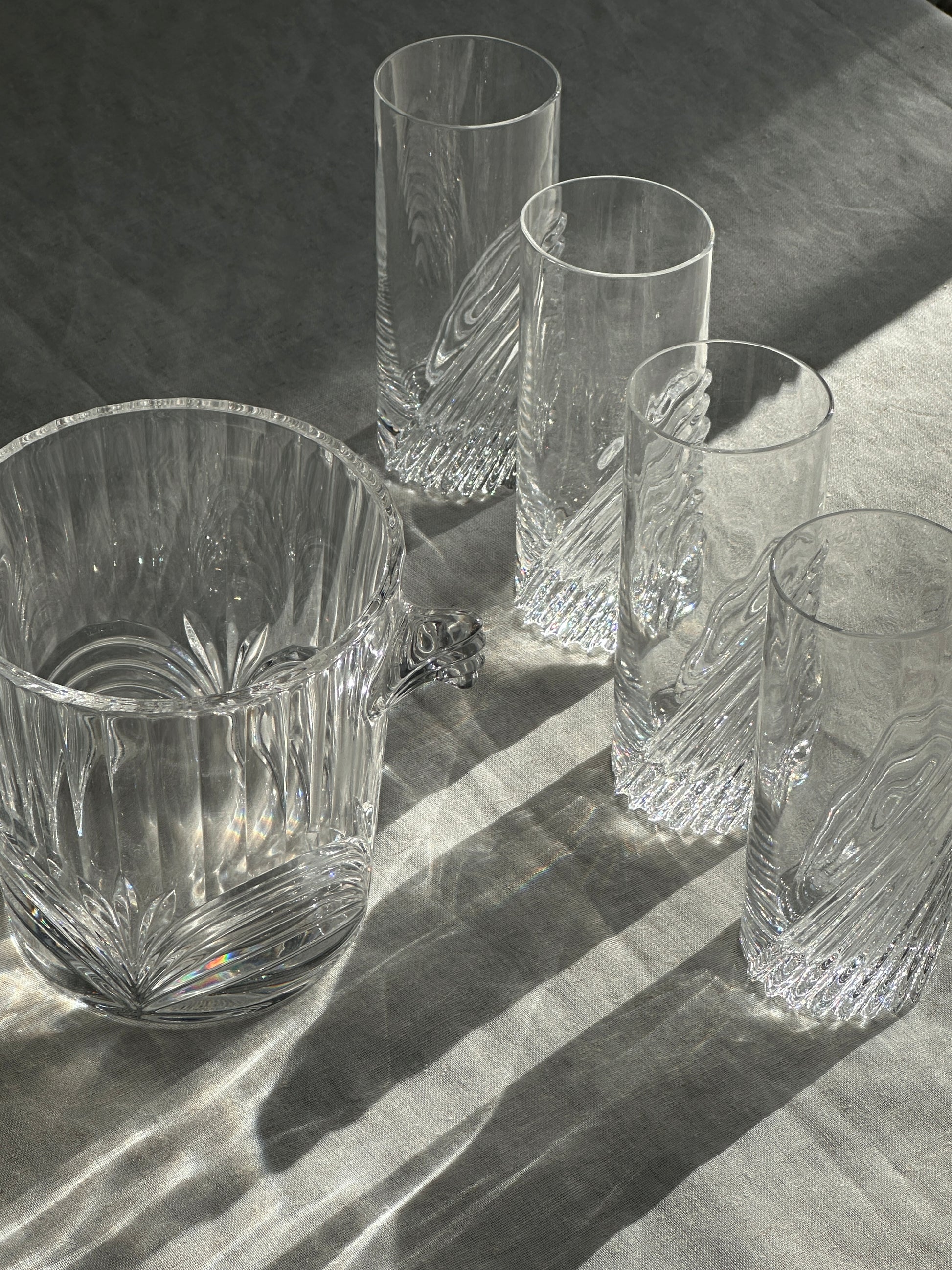 Heavy Swirled Crystal Glasses and Ice Bucket Set