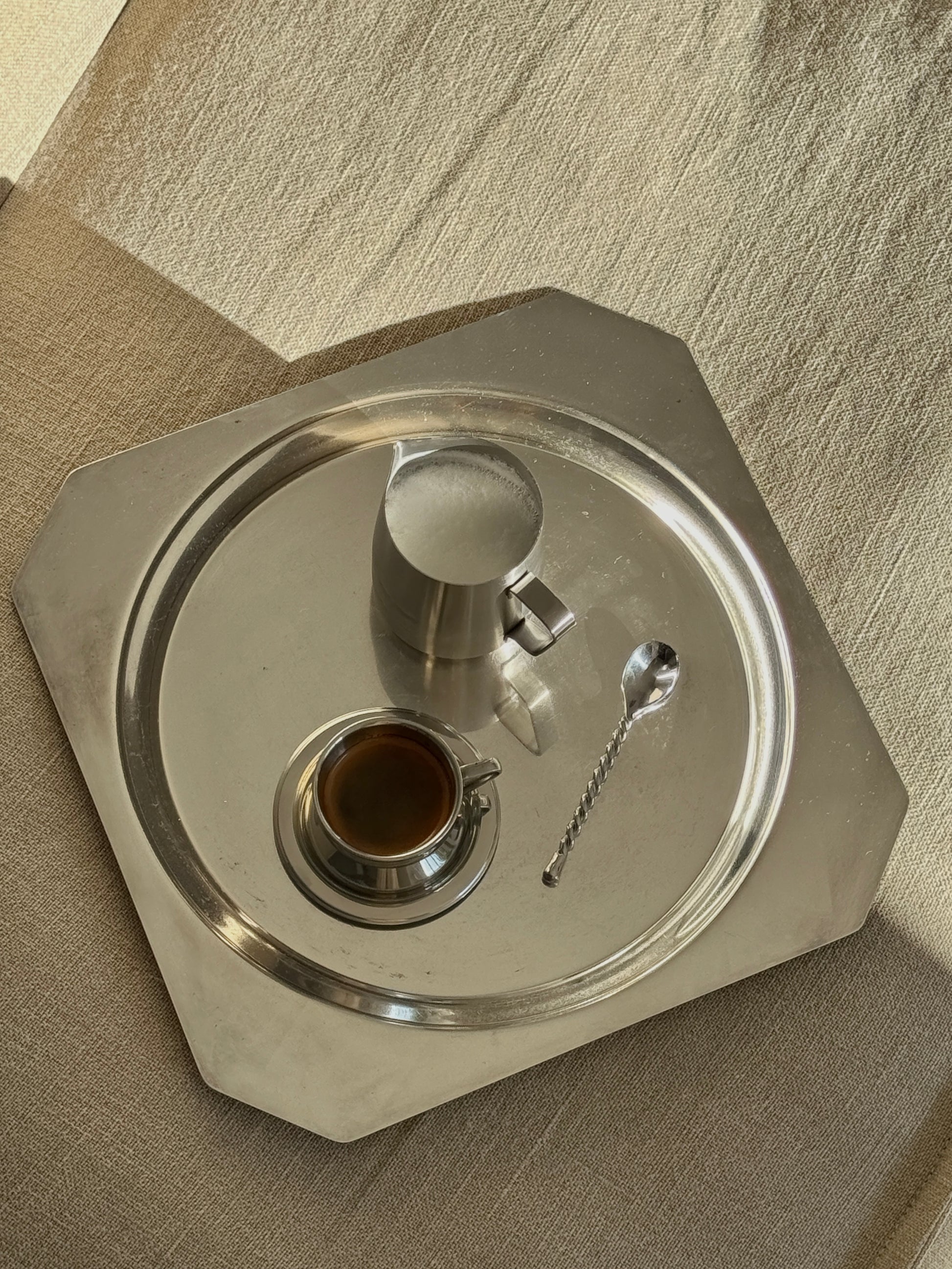 This Large Silver Plated Art Deco Tray features sleek lines and geometric detailing, perfect for stylish serving or display.
