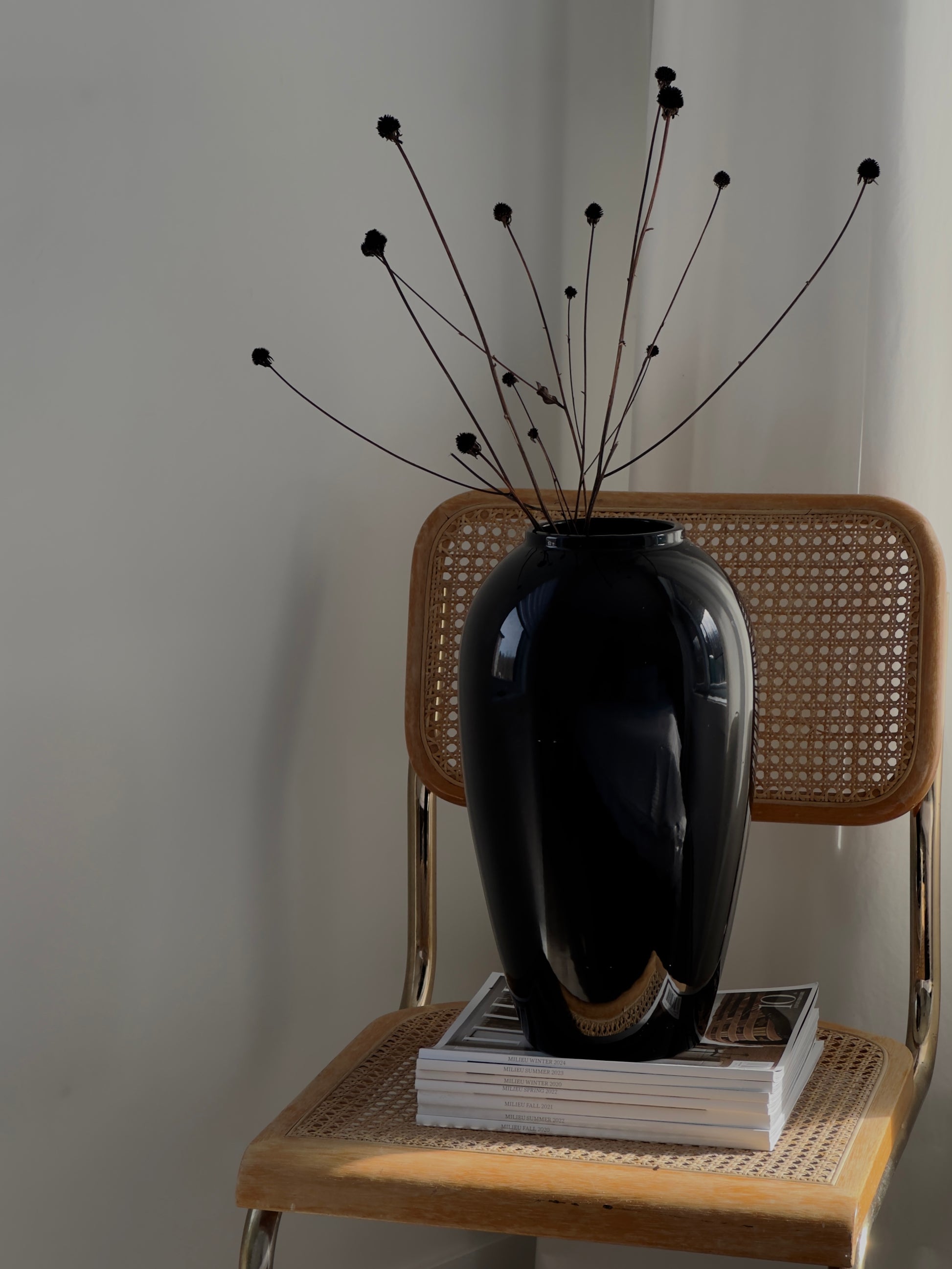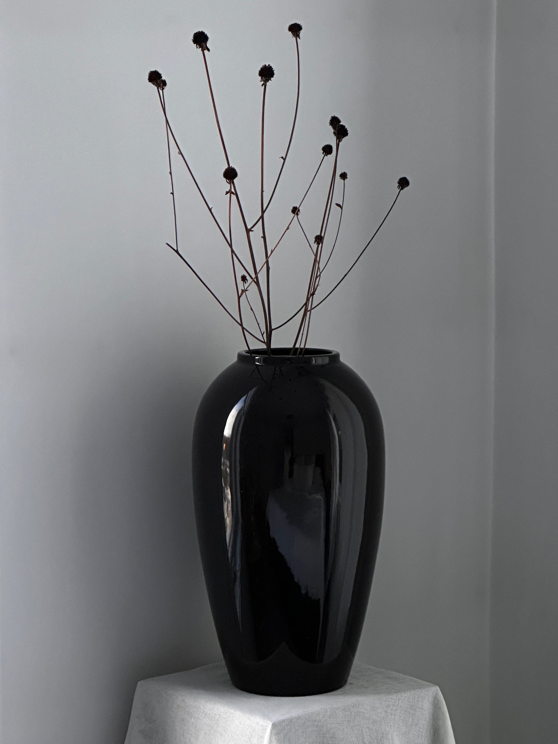 This tall vase features sleek lines and a captivating silhouette boasting a classic design inspired by mid-century aesthetics making it a perfect addition to both modern and traditional interiors.