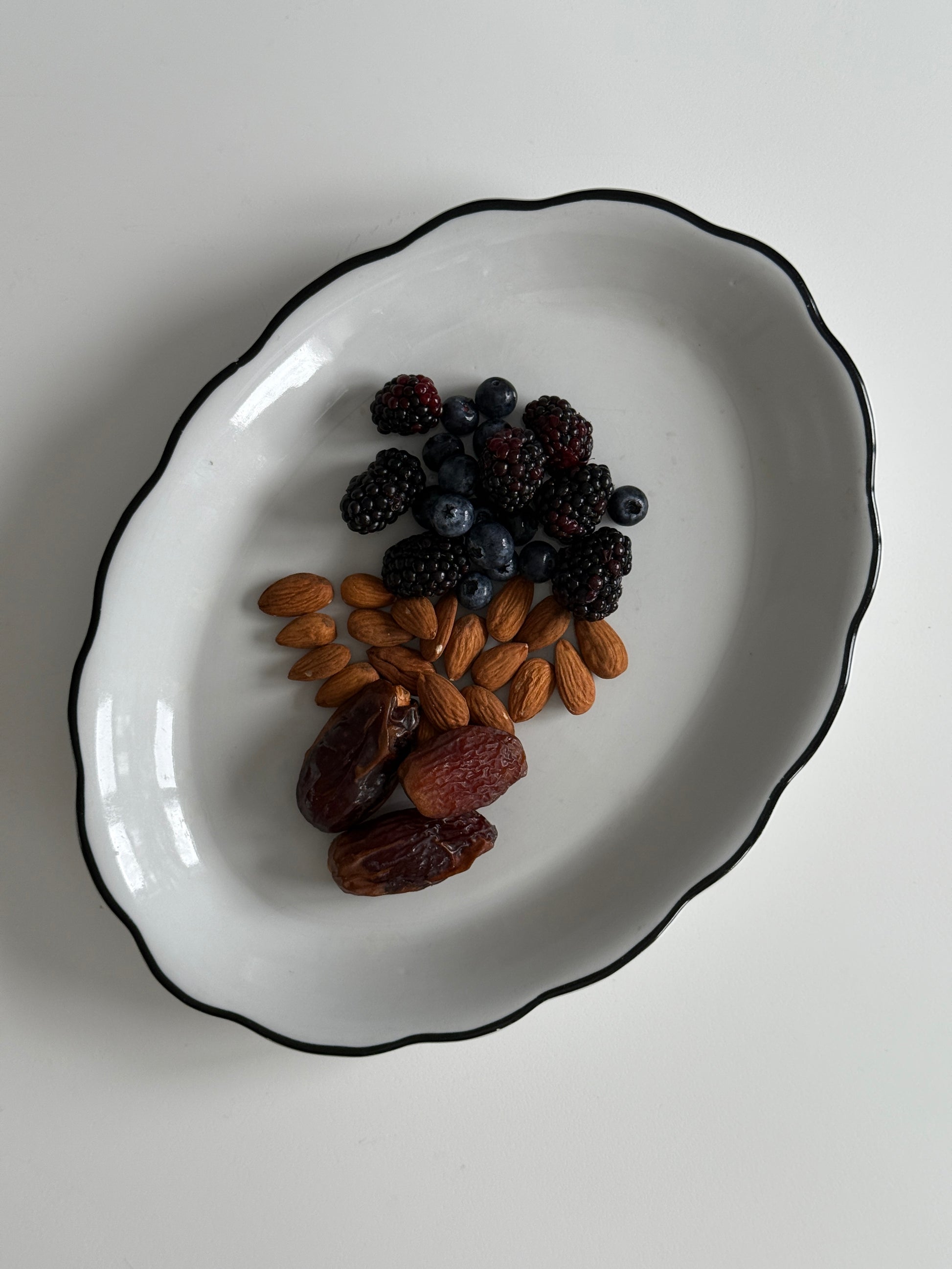 These minimalist white ceramic plates from Poland feature a sleek black rim, perfect for modern table settings.