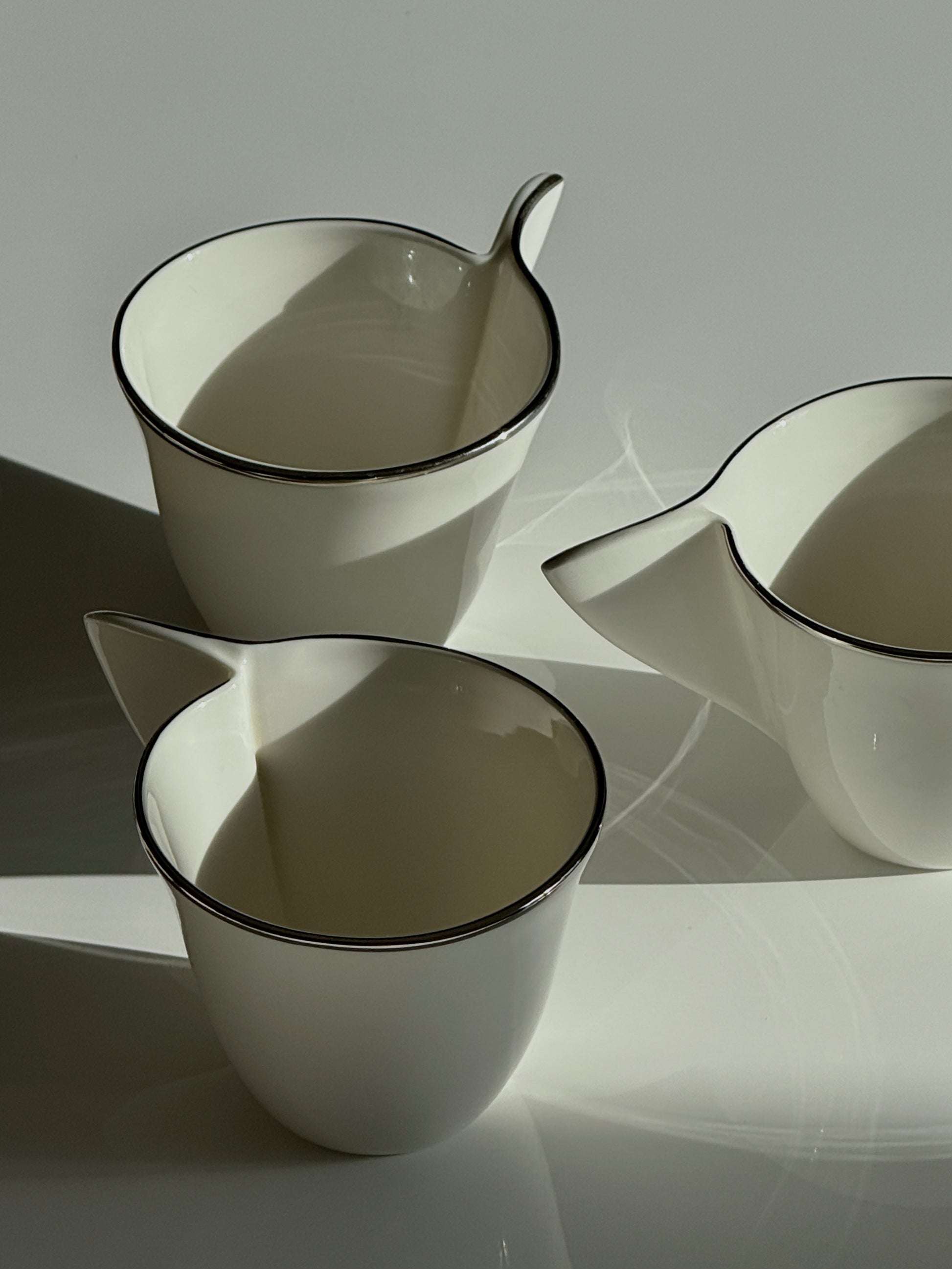 These Royal Fine China Abstract Coffee Cups feature artistic detailing and a sleek chrome trim, adding a modern touch to your coffee ritual.