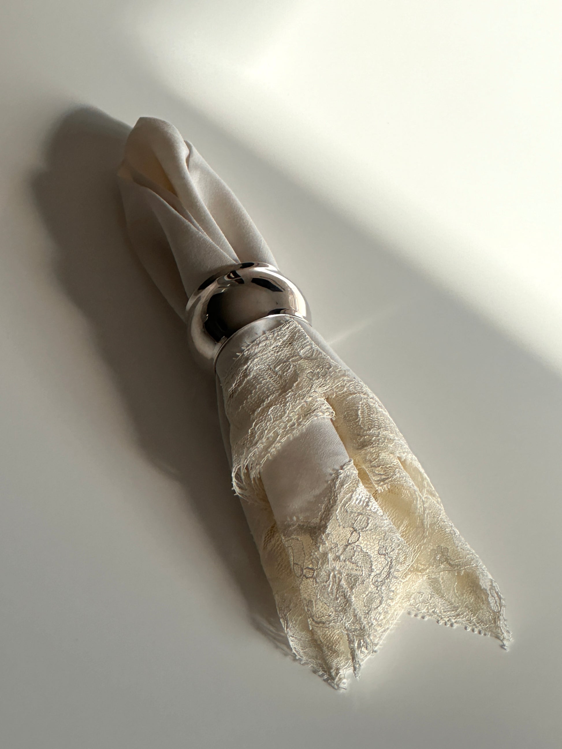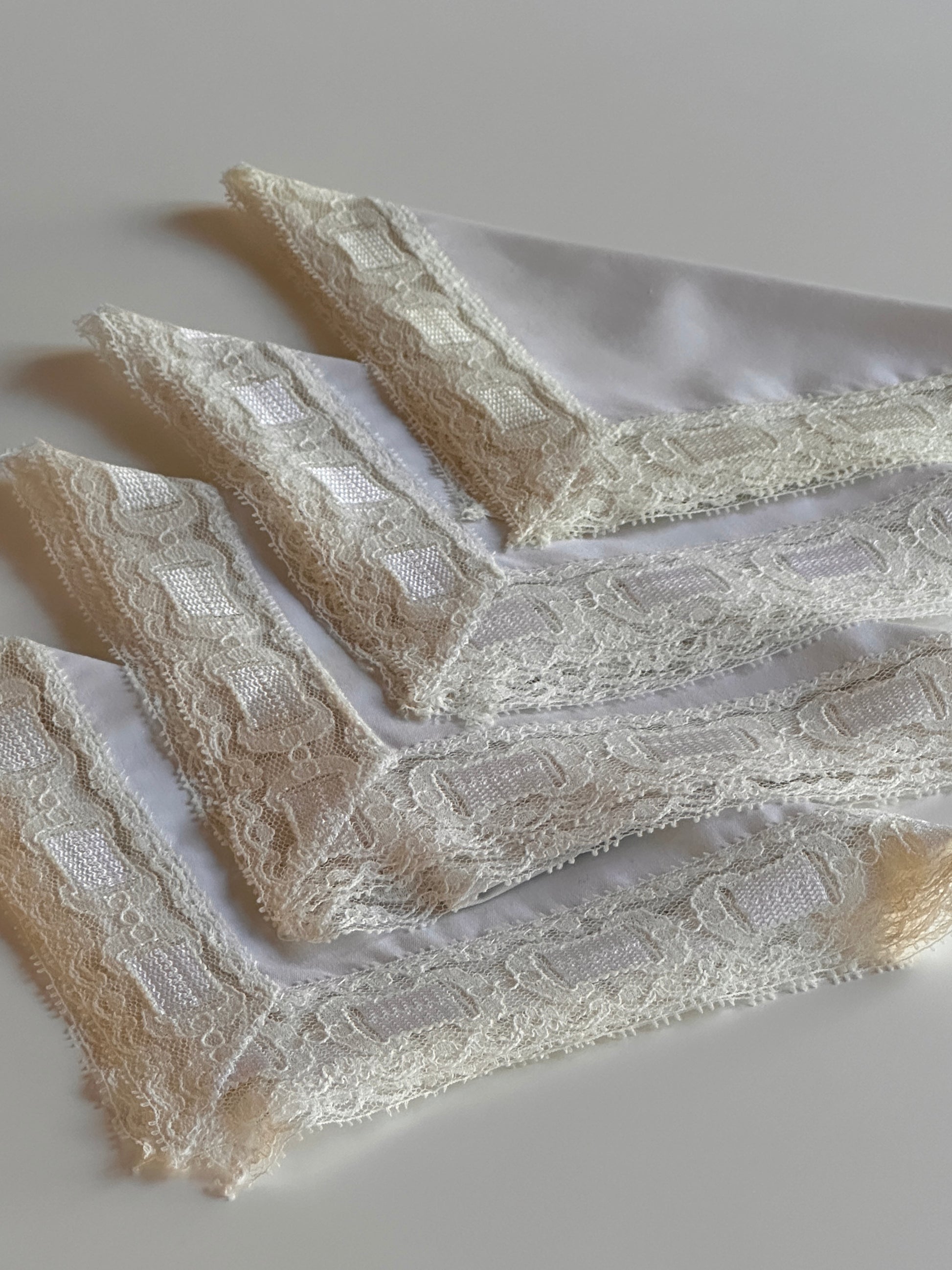 These soft, ecru-colored napkins feature delicate lace edging, adding a touch of vintage charm to your table setting. Perfect for formal occasions, rustic brunches, or any gathering where elegance matters, they bring a warm, inviting feel to your table decor.