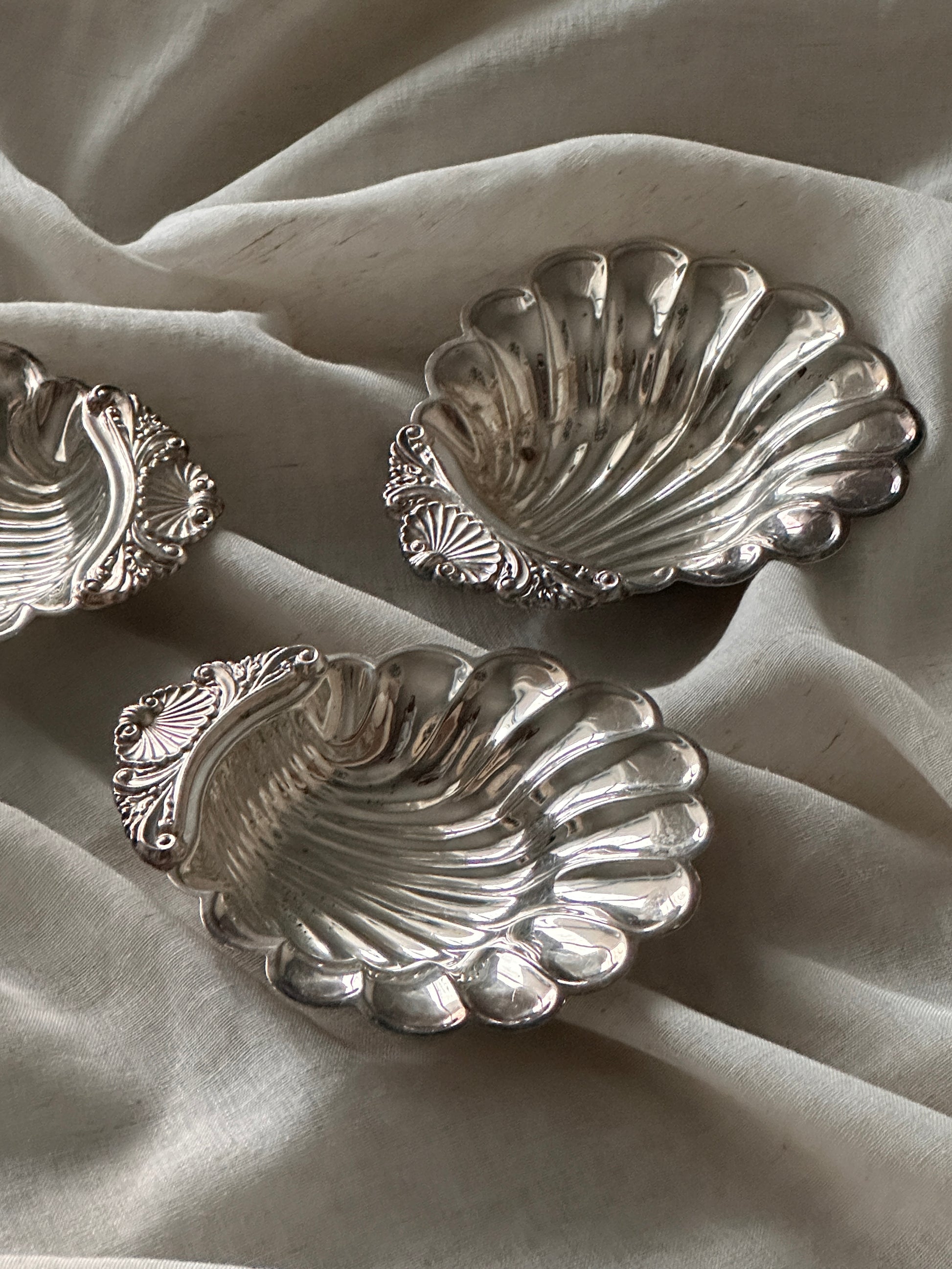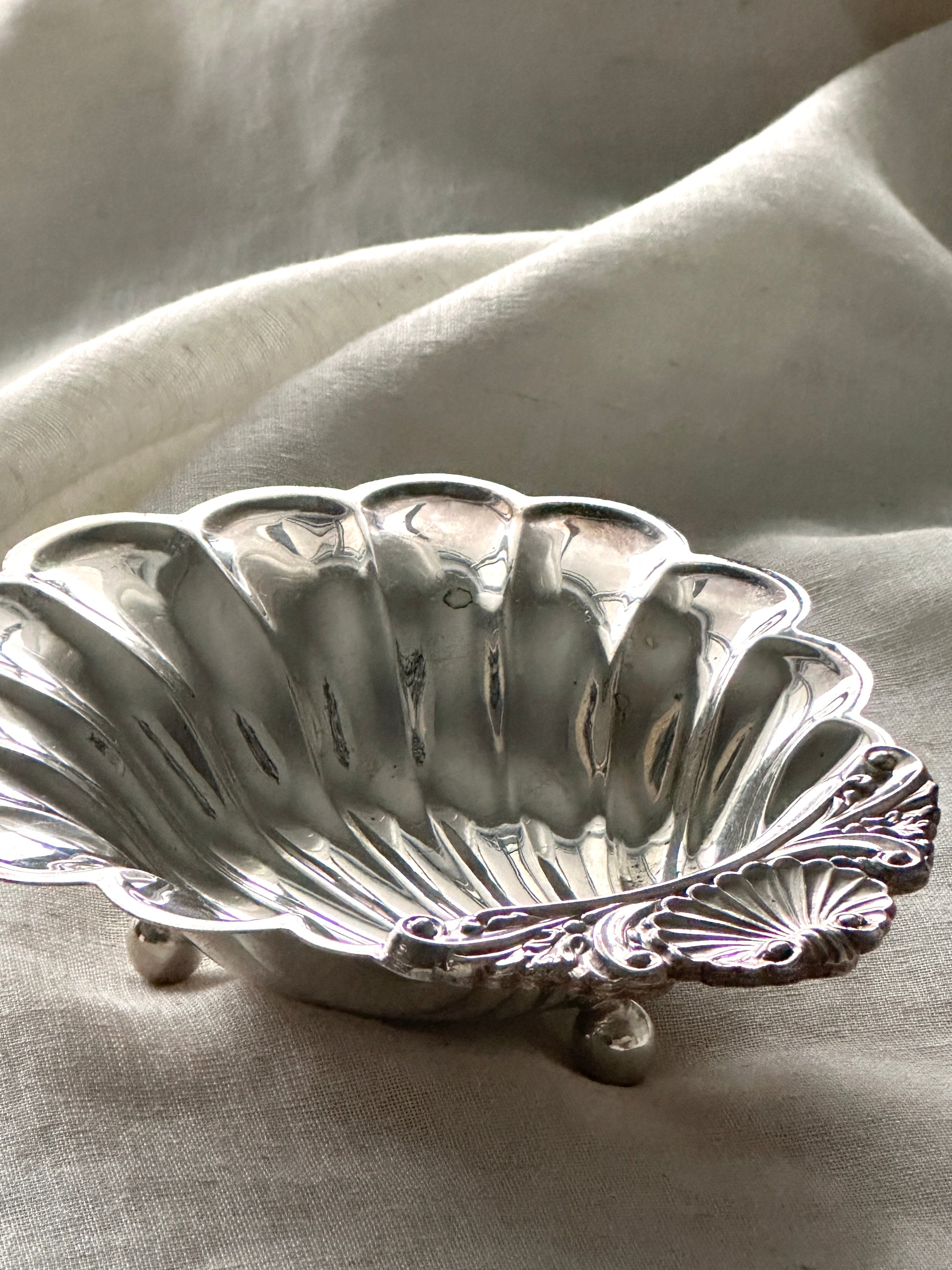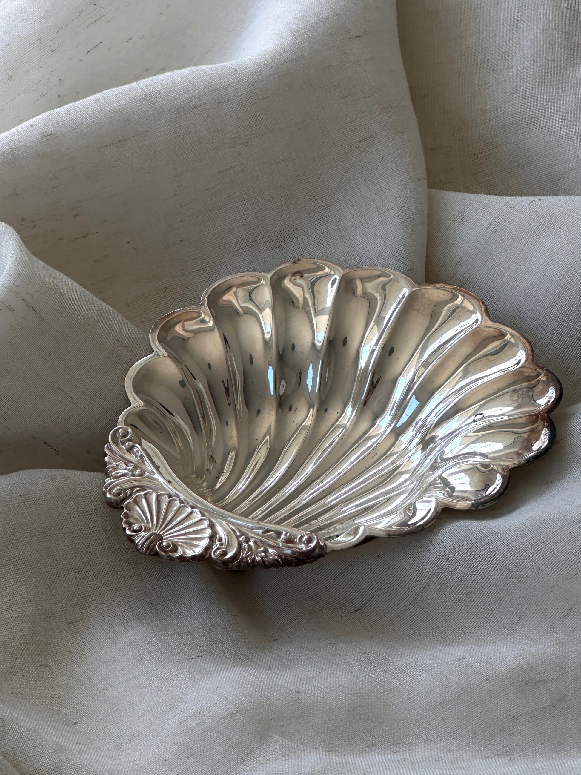 This charming Silver Plated dish features a captivating shell-shaped design that evokes seaside serenity. Perfect for use as a vide poche, this versatile dish is ideal for holding keys, trinkets, or other small items, while its footed base adds a touch of elevation and sophistication to any surface.