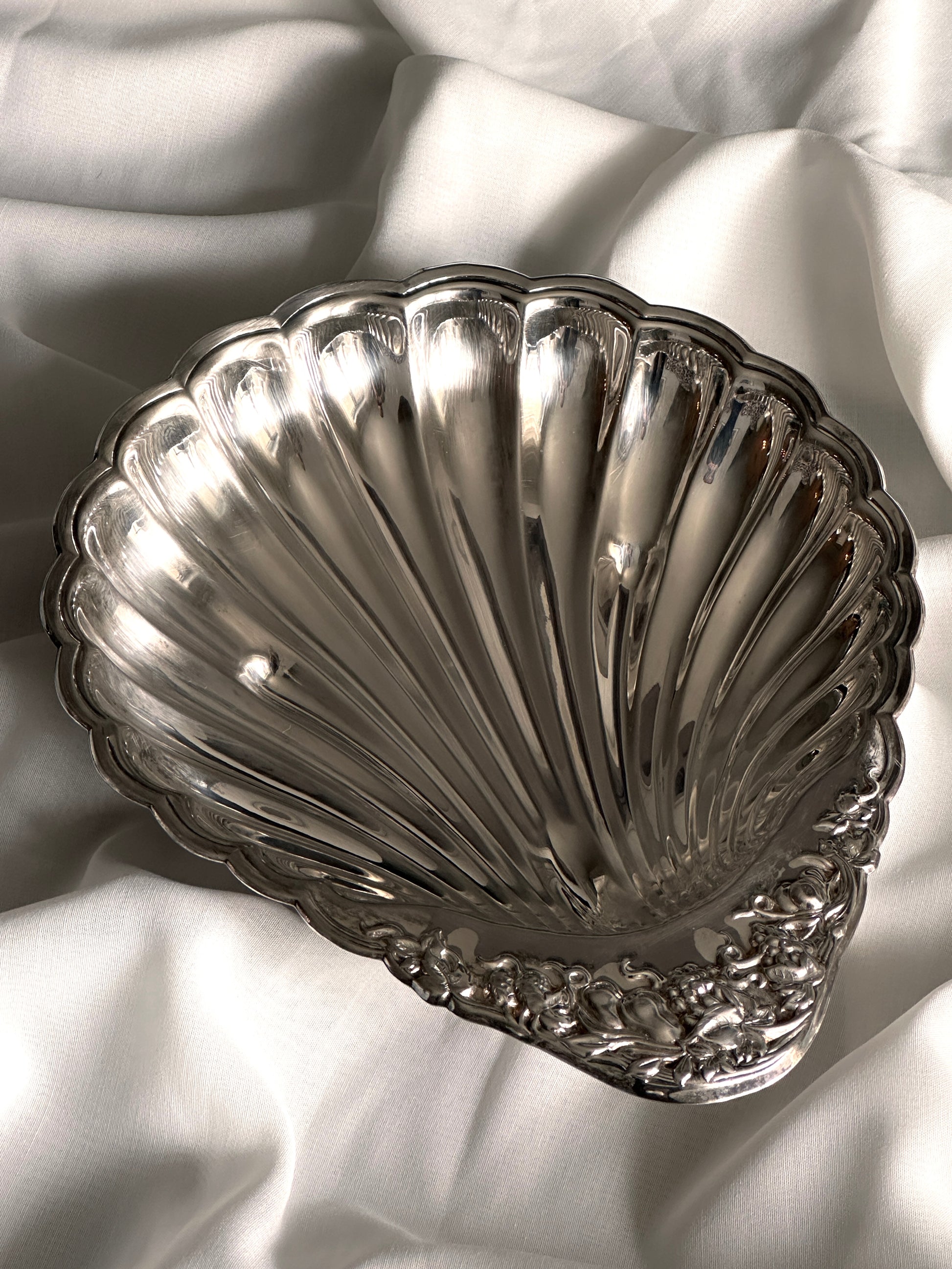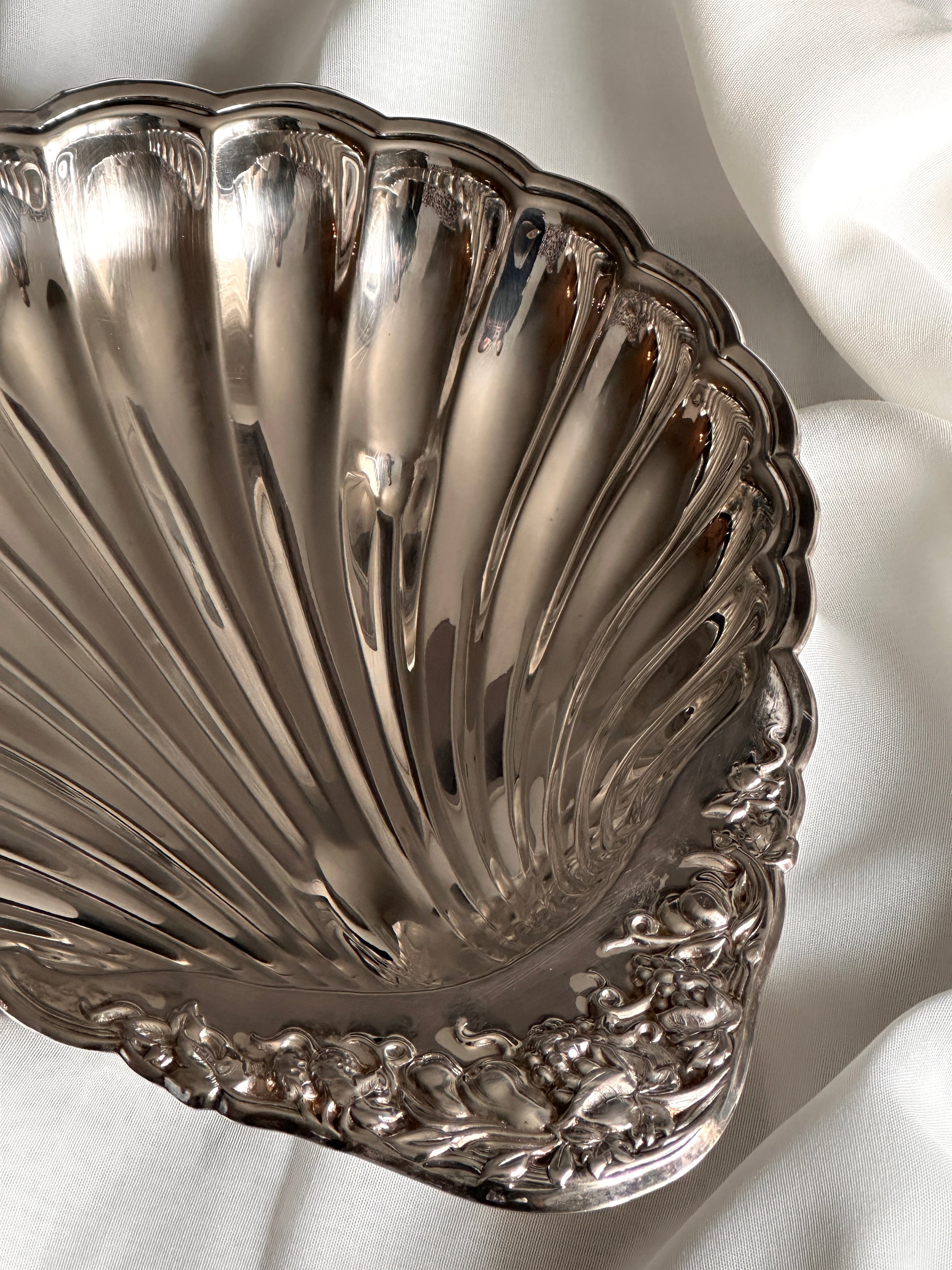 This Silver Plate Clam Shell Serving Bowl is designed to be both functional and decorative, making it a cherished heirloom piece for years to come. This large bowl features intricately etched ridges and a lustrous silver-plated finish that catches the light, adding a touch of glamour to any table setting.