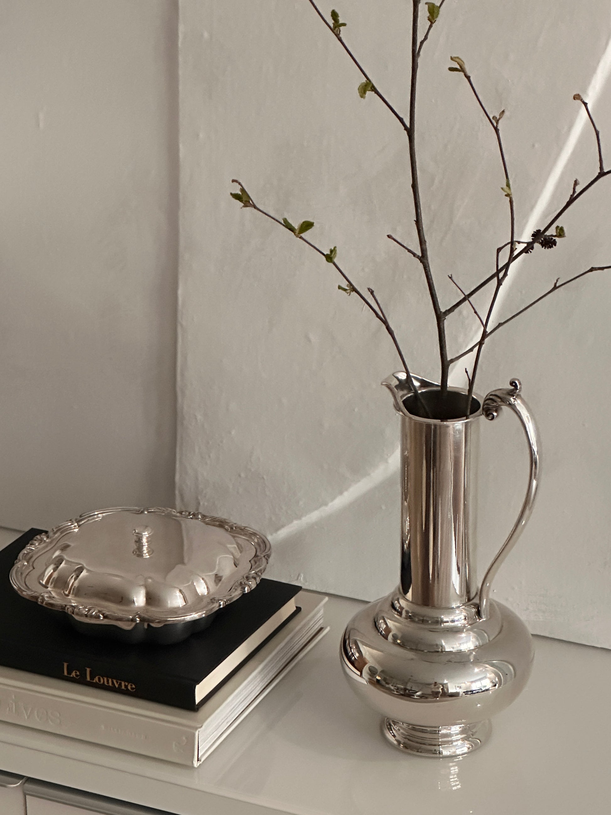 This elegant vessel offers a tall sleek silhouette and shimmering silver finish make it a versatile piece, perfect for showcasing floral arrangements, serving beverages, or simply as a striking standalone accent.