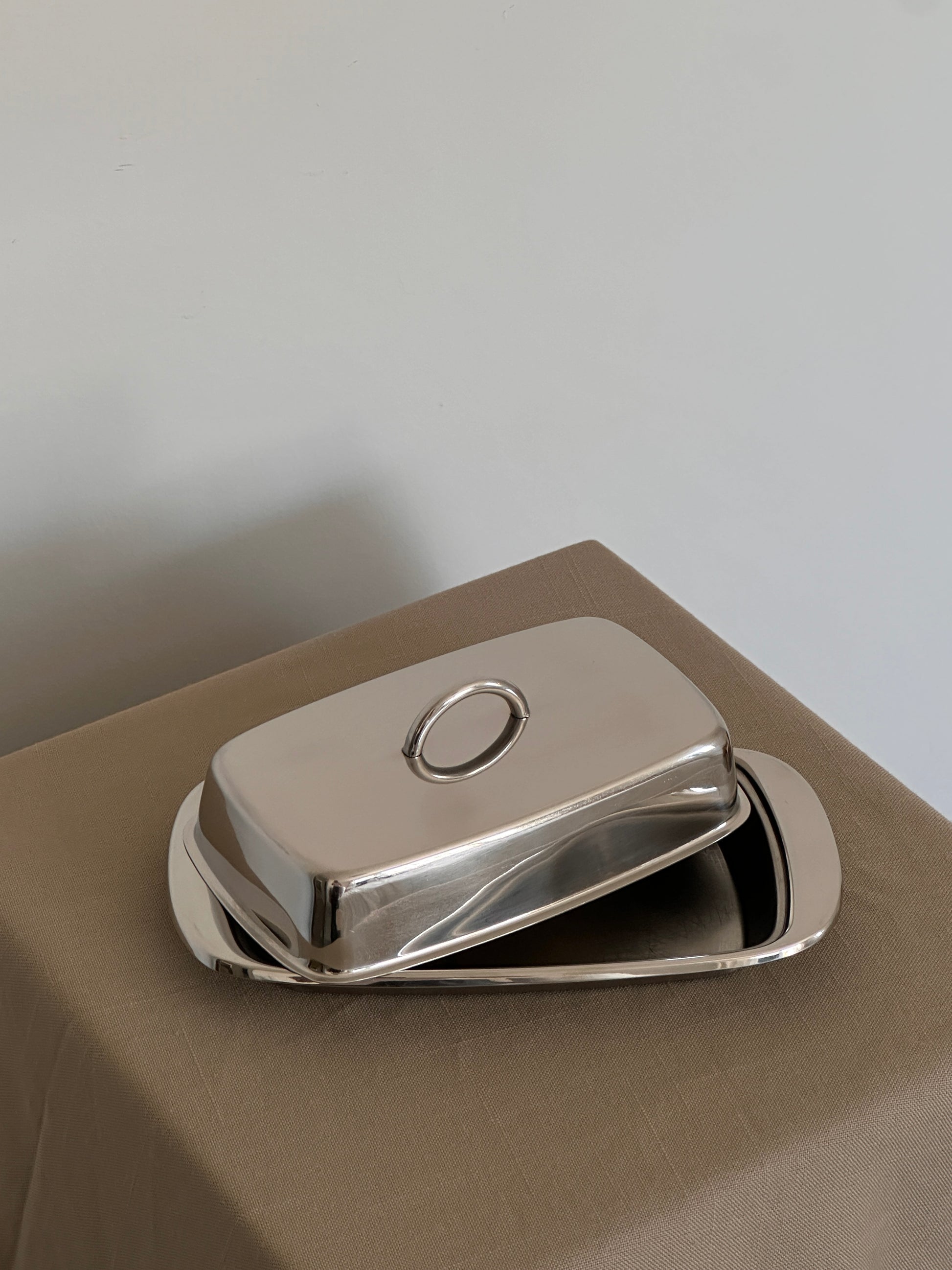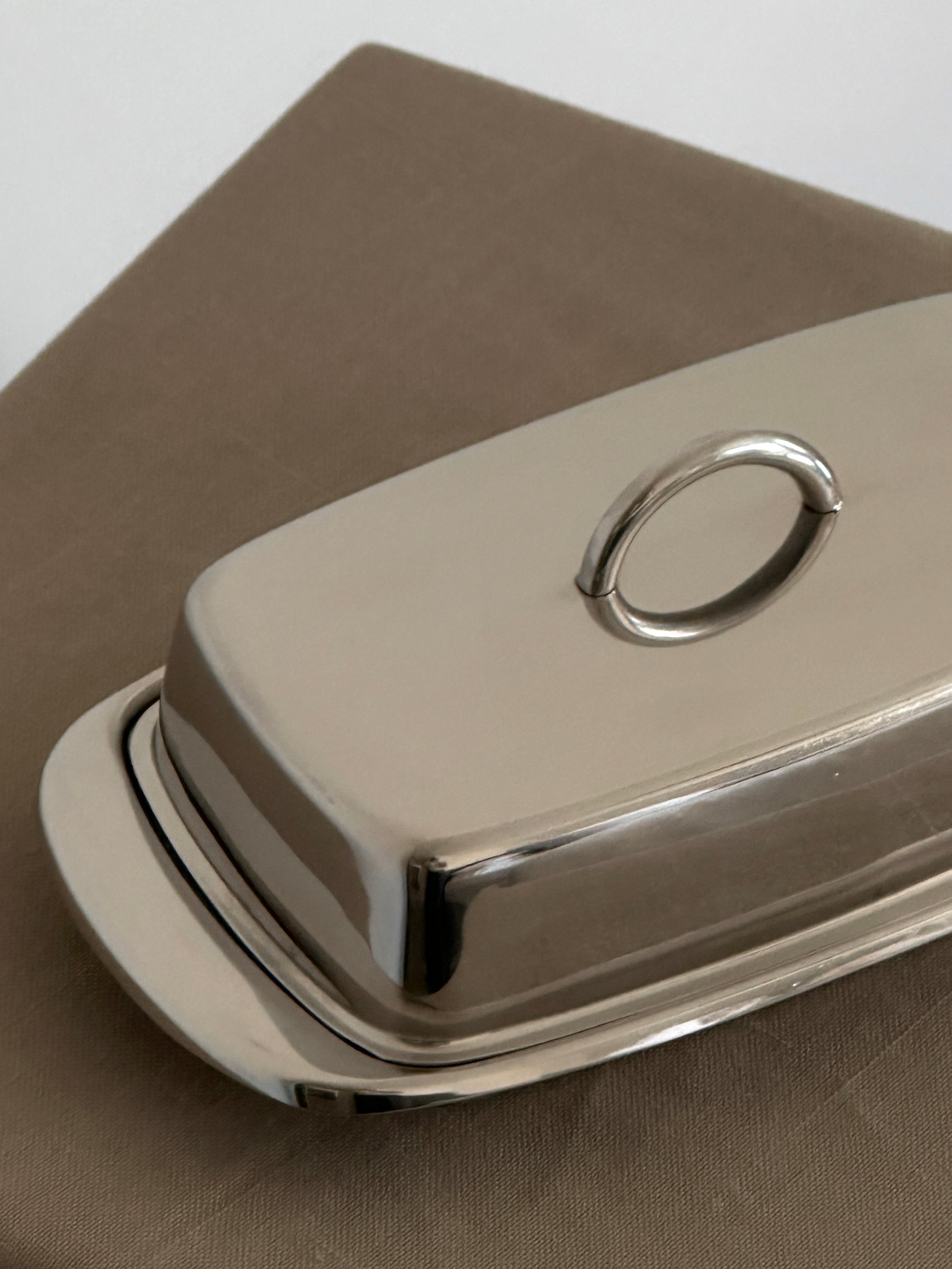 Crafted with durable stainless steel and boasting a sleek chrome mirror finish, this butter dish will complements any table setting. The secure lid keeps your butter fresh while adding a touch of shine to your table.