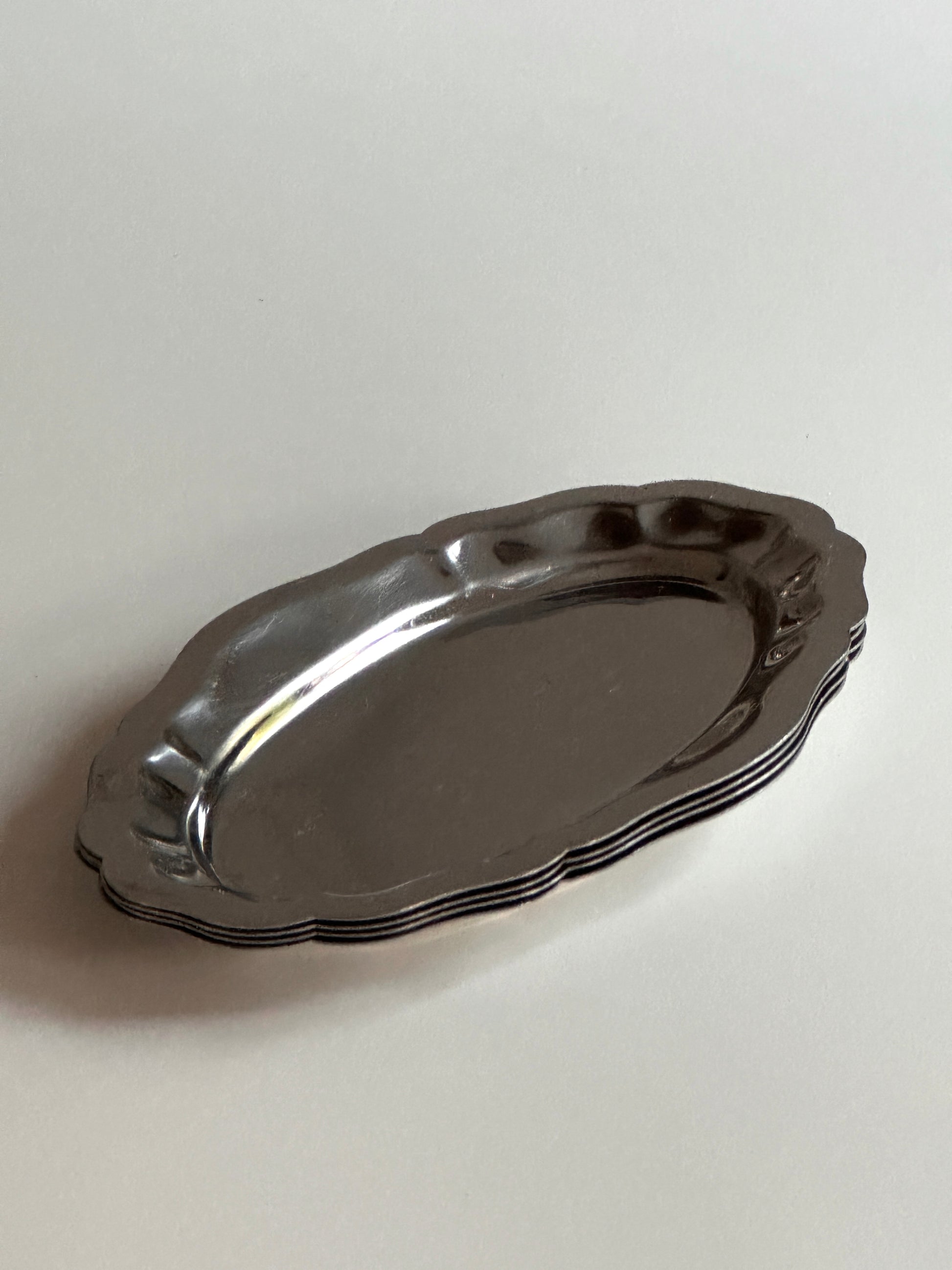 These sleek steel oval serving dish are perfect for presenting appetizers or sides with a modern touch. Its smooth, polished finish and classic shape make it versatile for any occasion, from casual dinners to elegant gatherings.