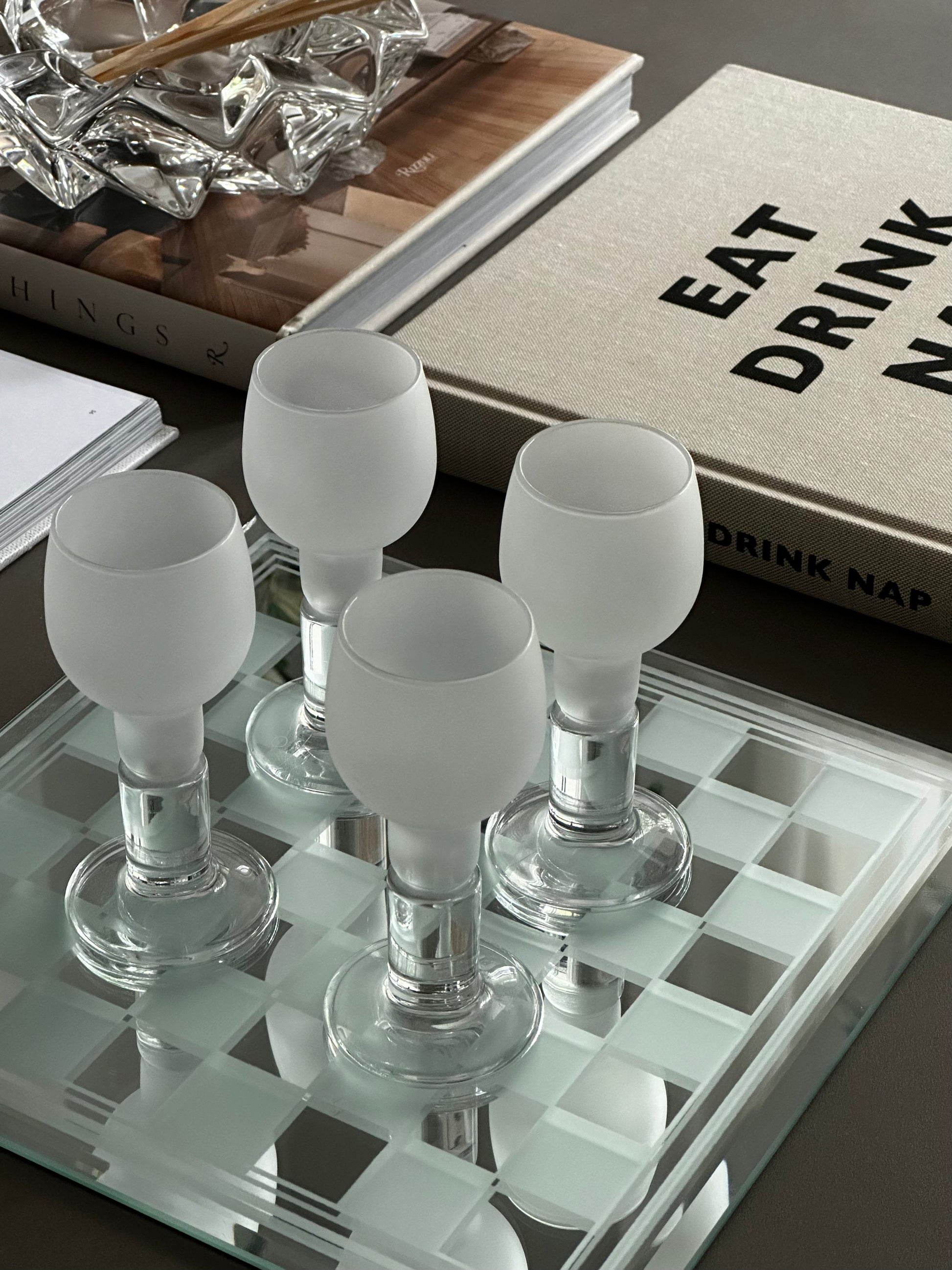 These crystal Italian-made Aperitif glasses make a statement of refined taste. The matte glass finish lends a contemporary touch, adding a subtle, velvety texture. The clear glass finish, on the other hand, embodies timeless elegance.