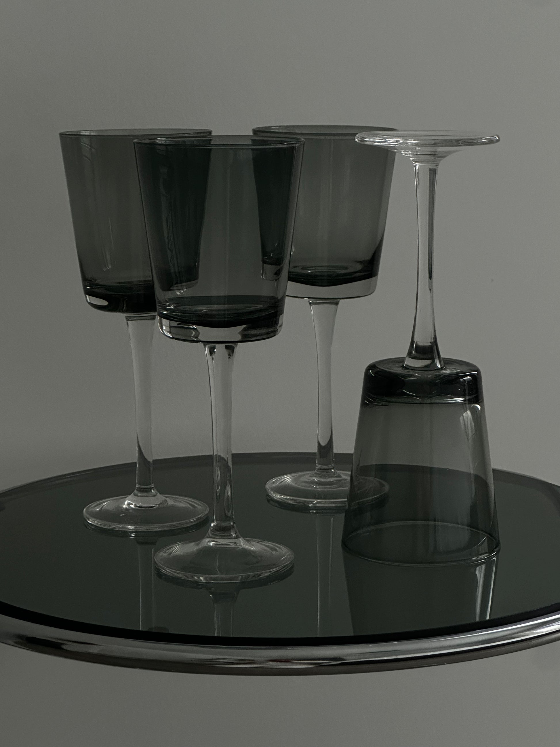 Vintage Smoked Grey Wine Glasses (set of 4)