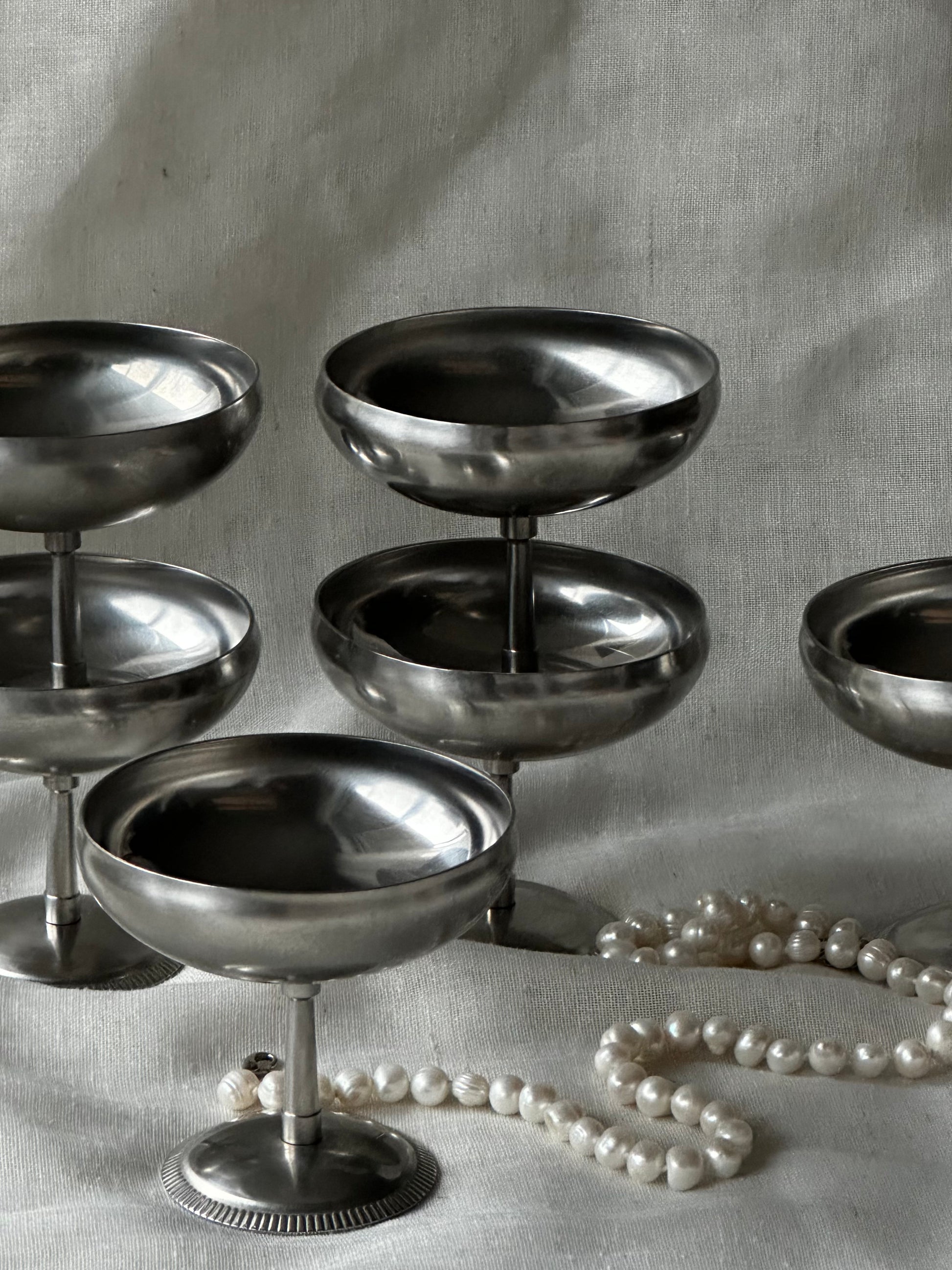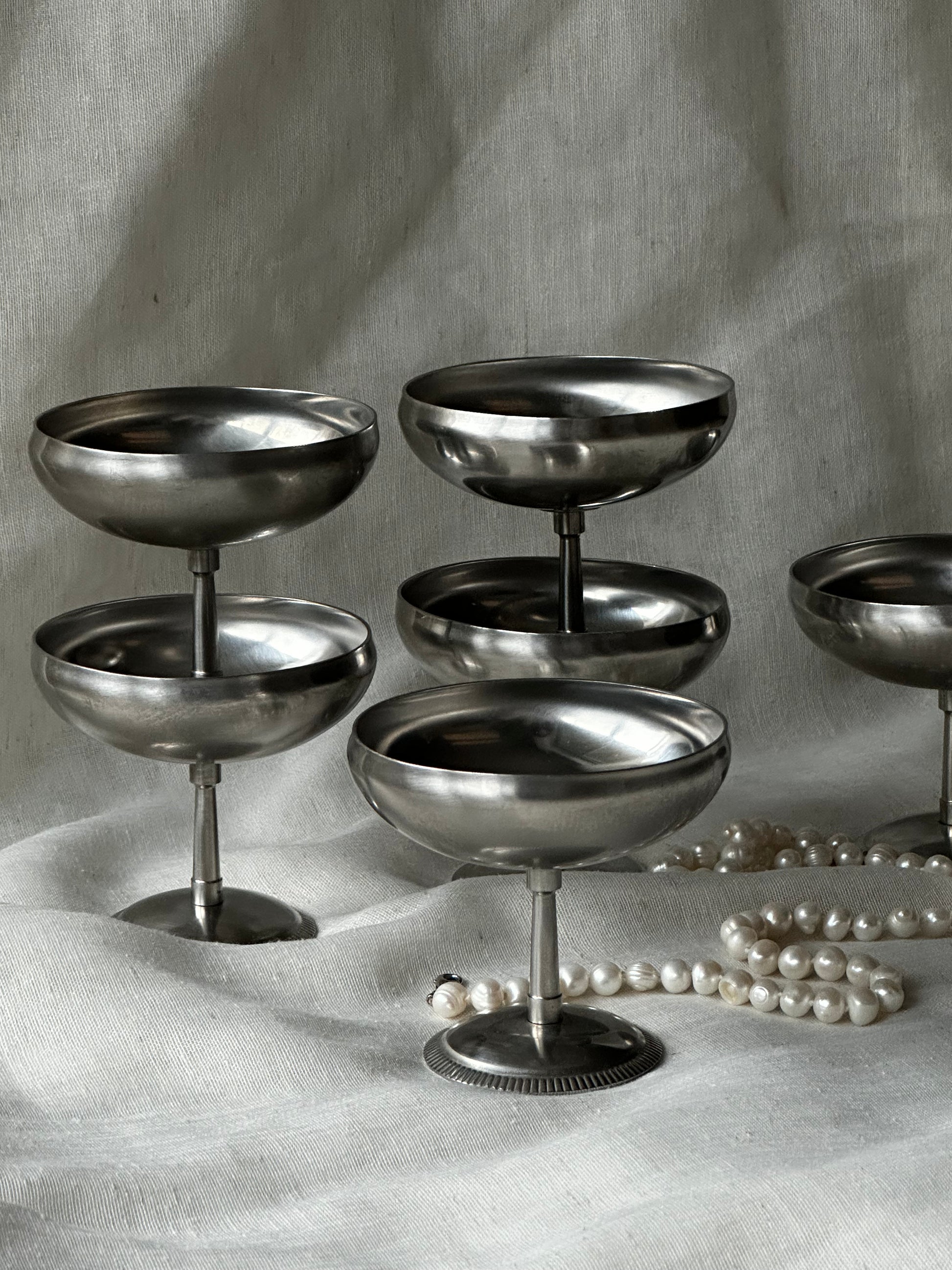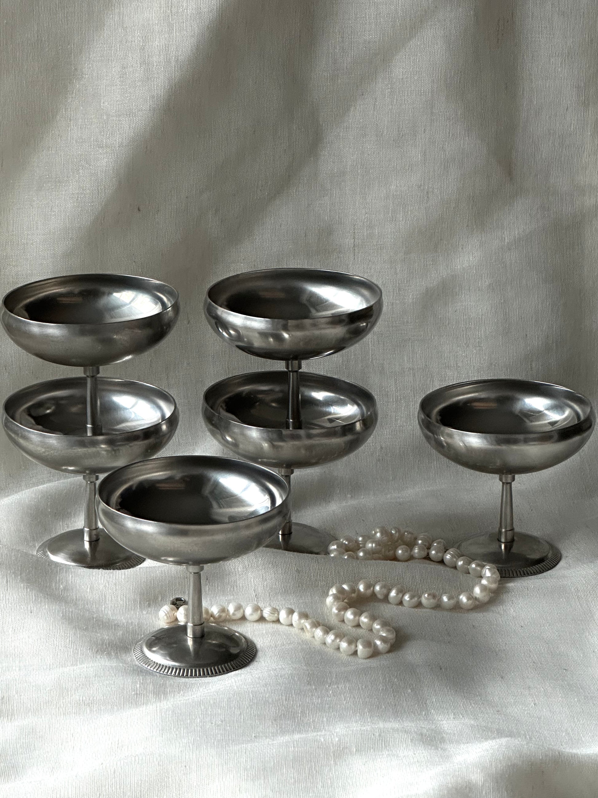 Vintage French Stainless Steel Ice Cream Cups by Letang Remy (Set of 6)
