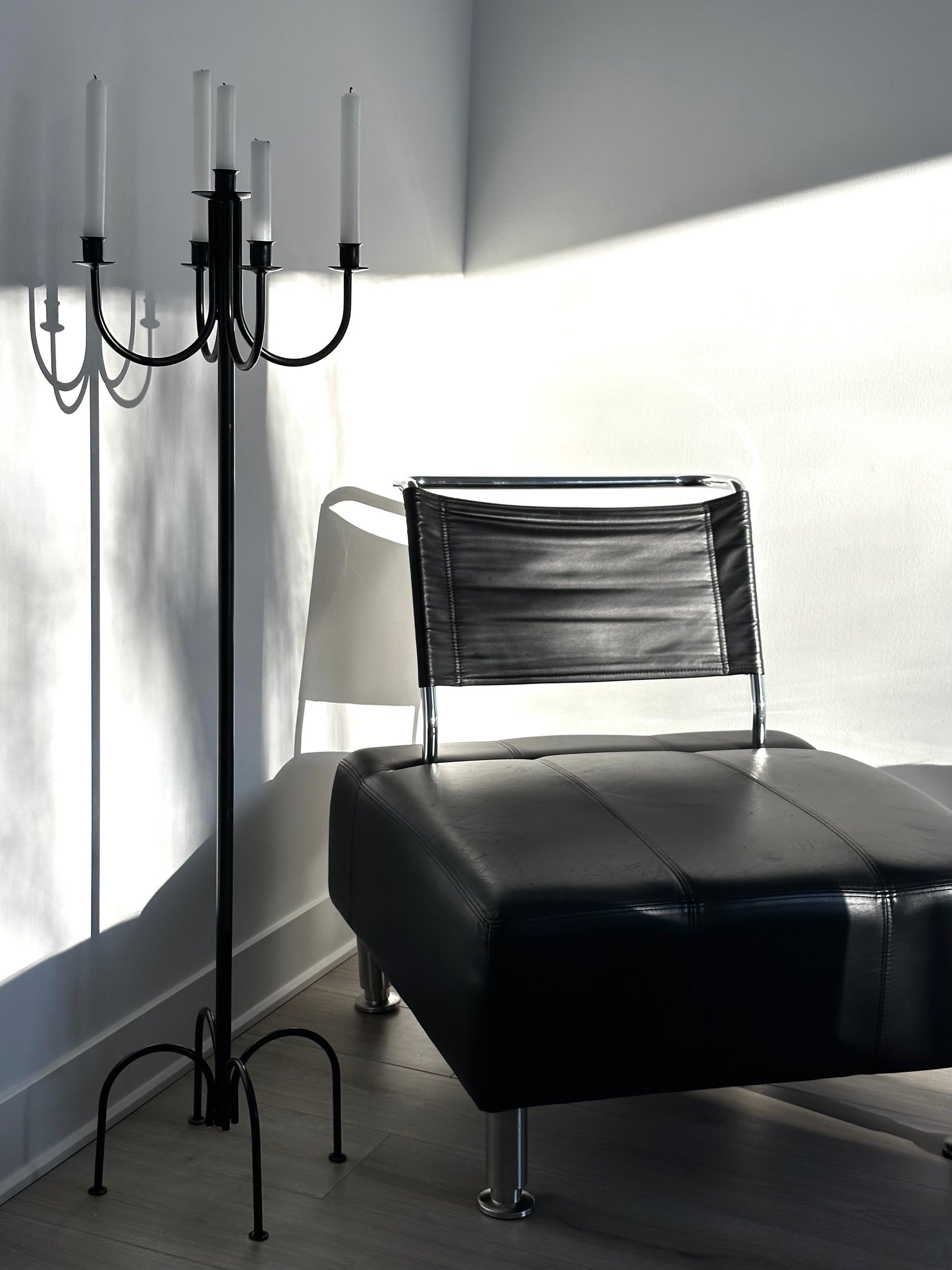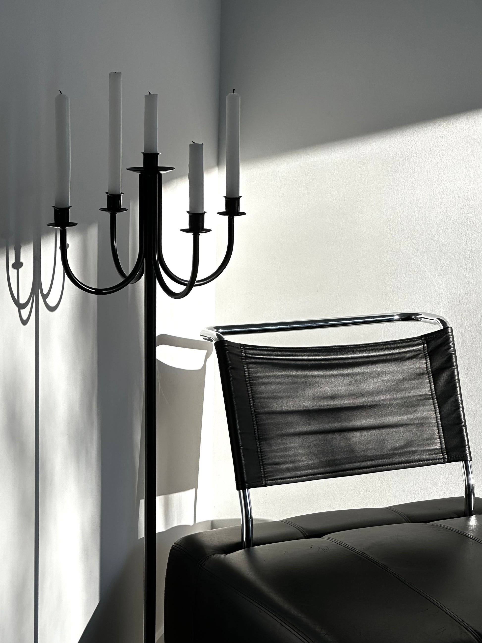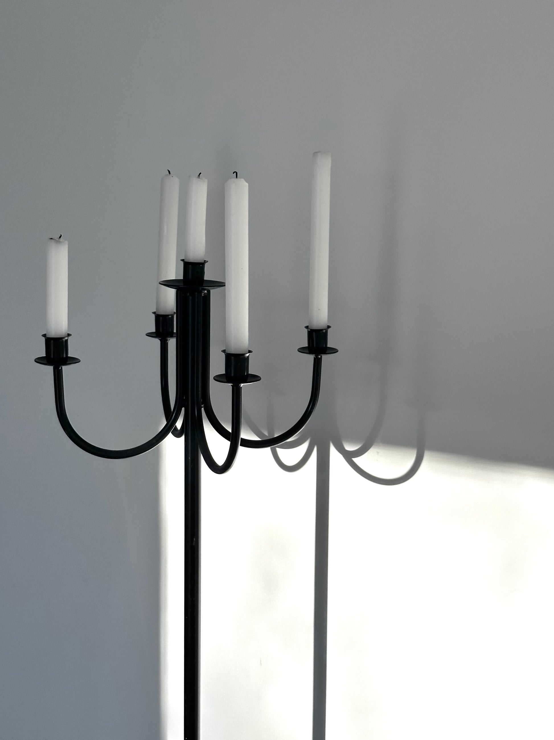 Illuminate your space with contemporary edge using this sleek black metal floor candelabra. With five minimalist wicks casting a moody ambiance, this accent decor piece merges bold design with functionality.