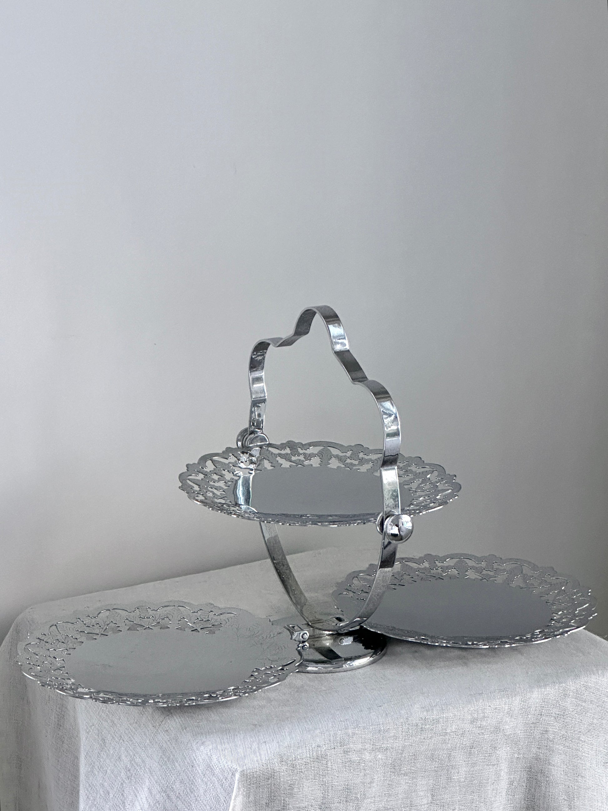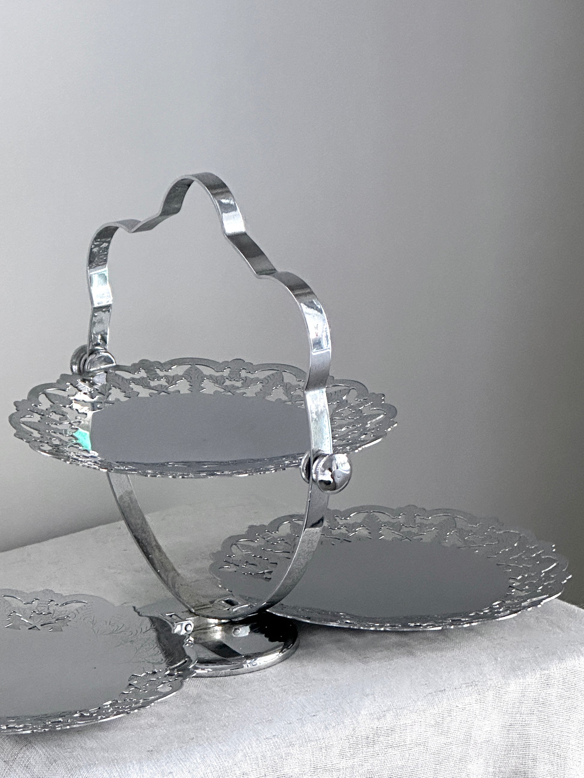 Fold Up Silver Plate 3 Tier Dessert Stand