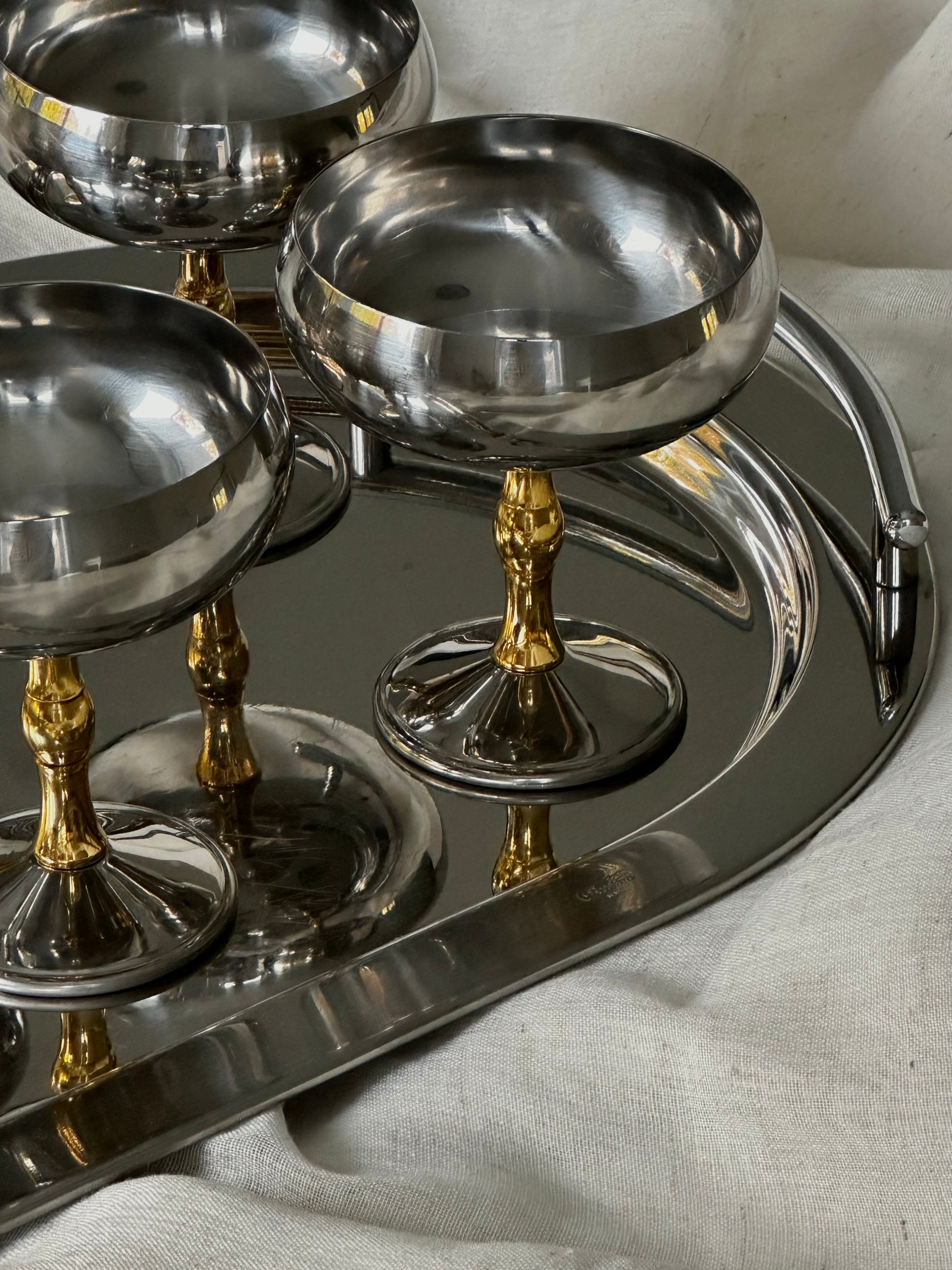 These coupes are a contemporary tribute to Italian craftsmanship, combining sleek stainless steel durability with a touch of vintage allure. Elevate your champagne or cocktail enjoyment and toast in modern style with these exceptional pieces that embody Italian excellence.