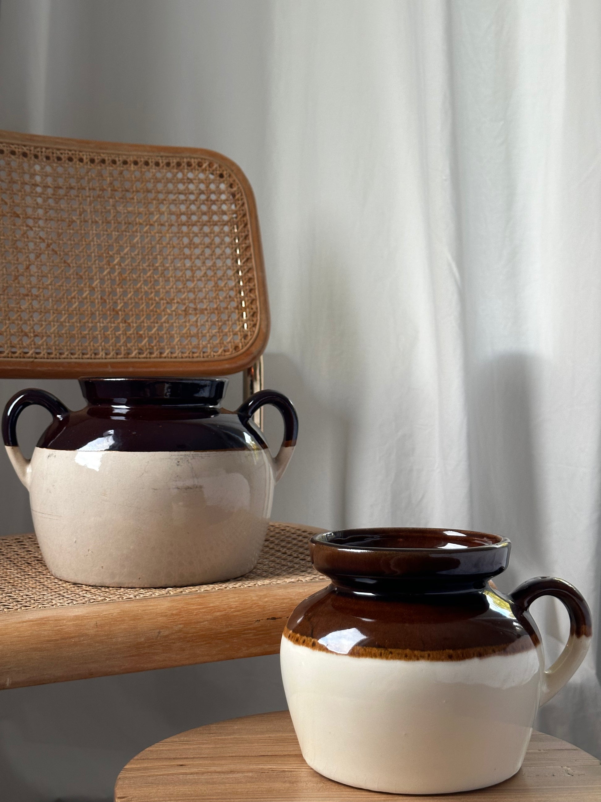 Set of 2 vintage McCoy stoneware pots, a delightful blend of nostalgia and functionality. These iconic stoneware pots bring a touch of retro charm to decor while also serving as a practical decorative vessel.