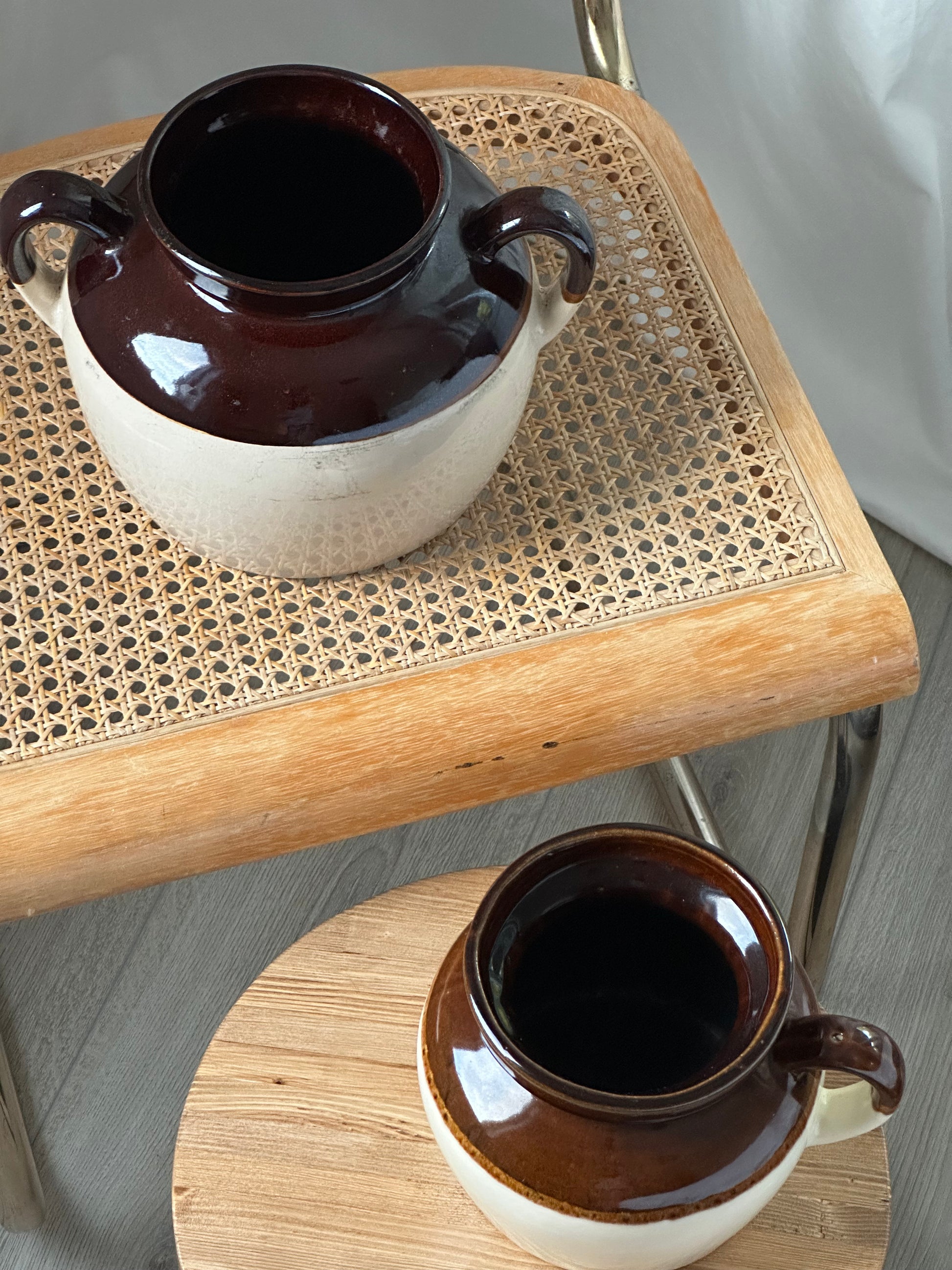 Pot with 2 handles (deep brown) : [7” H x 8.5” W]