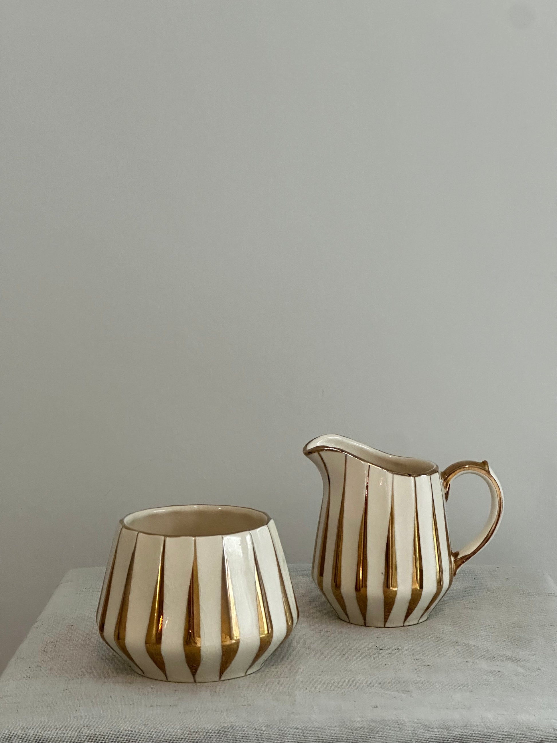 Vintage vertical striped Creamer and Sugar Bowl