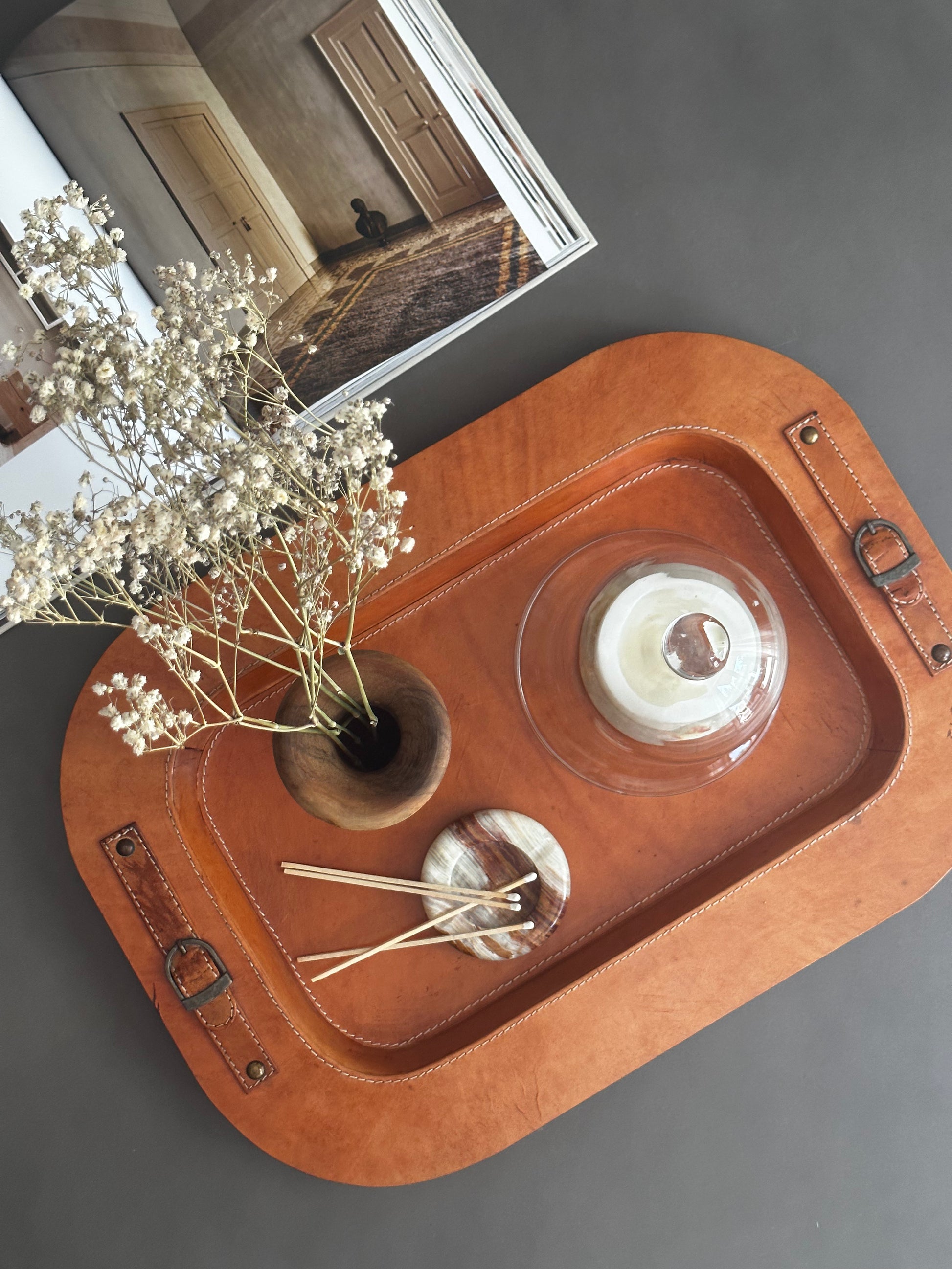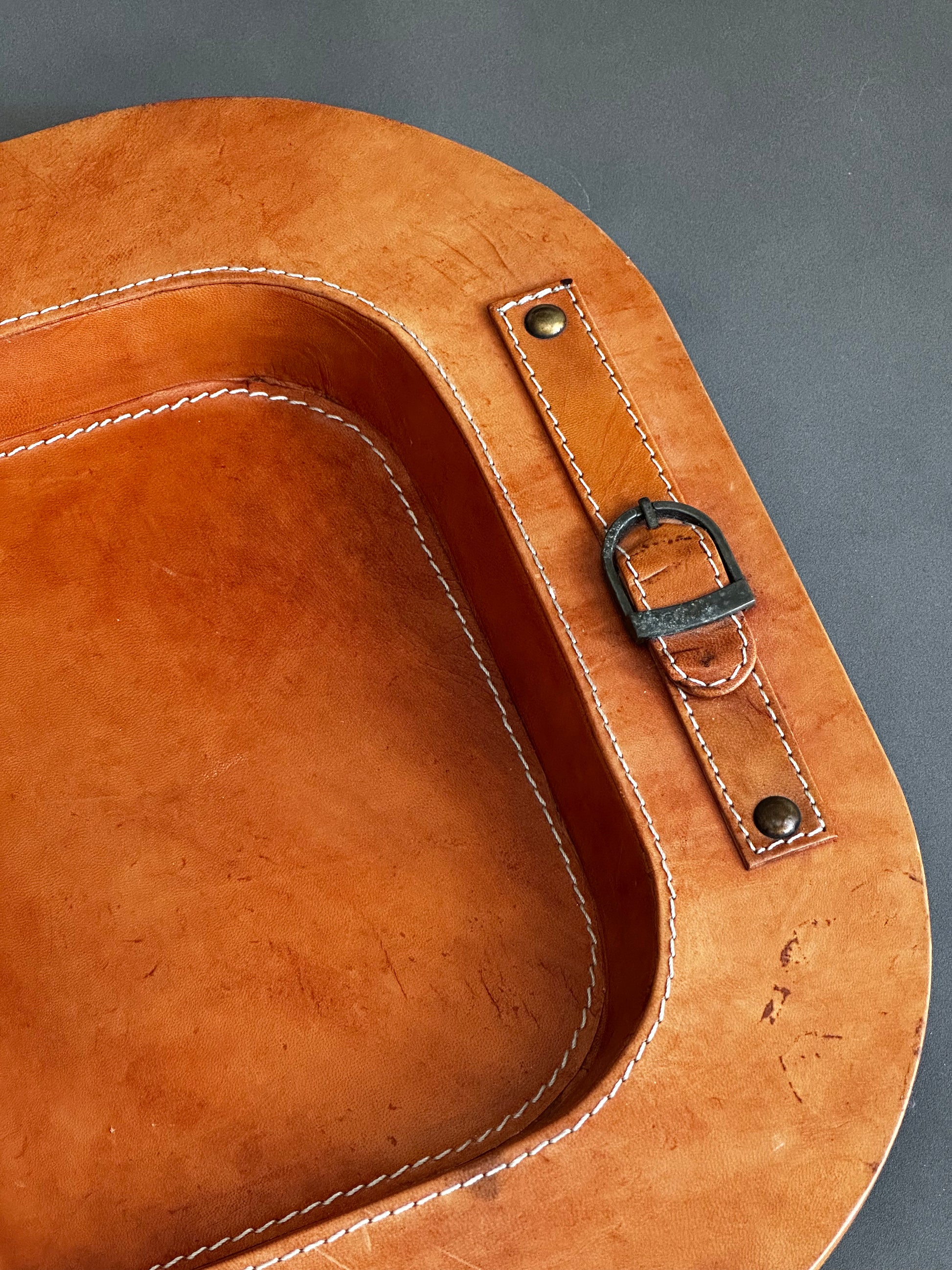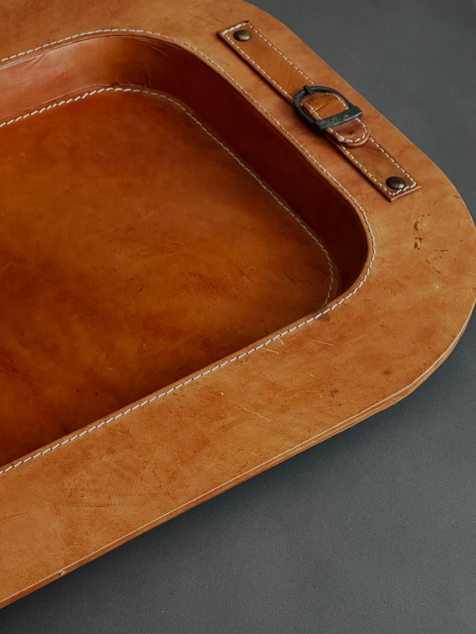Vintage Stitched Leather Tray in a rich cognac colour offers true blend of functionality and elegance.