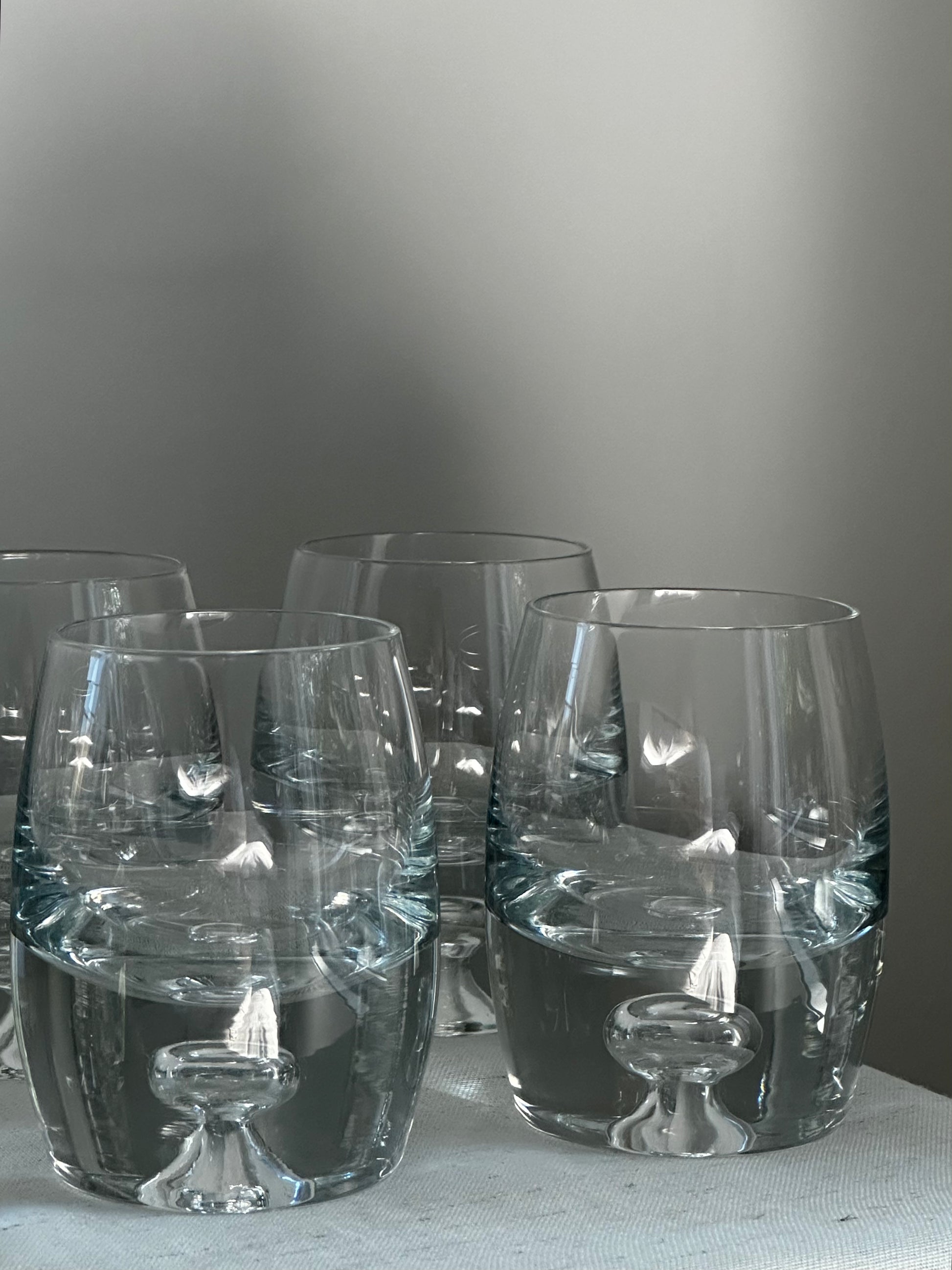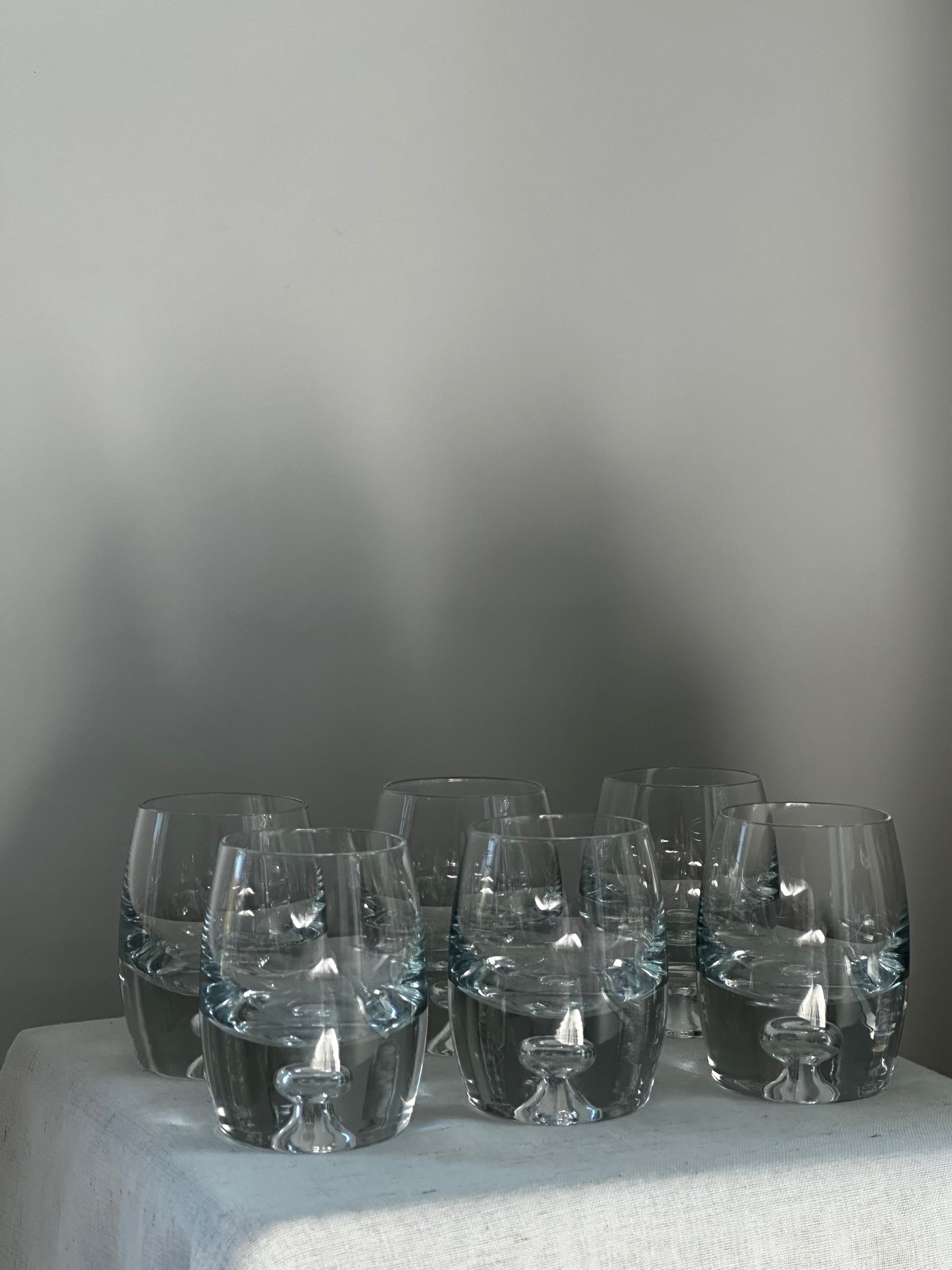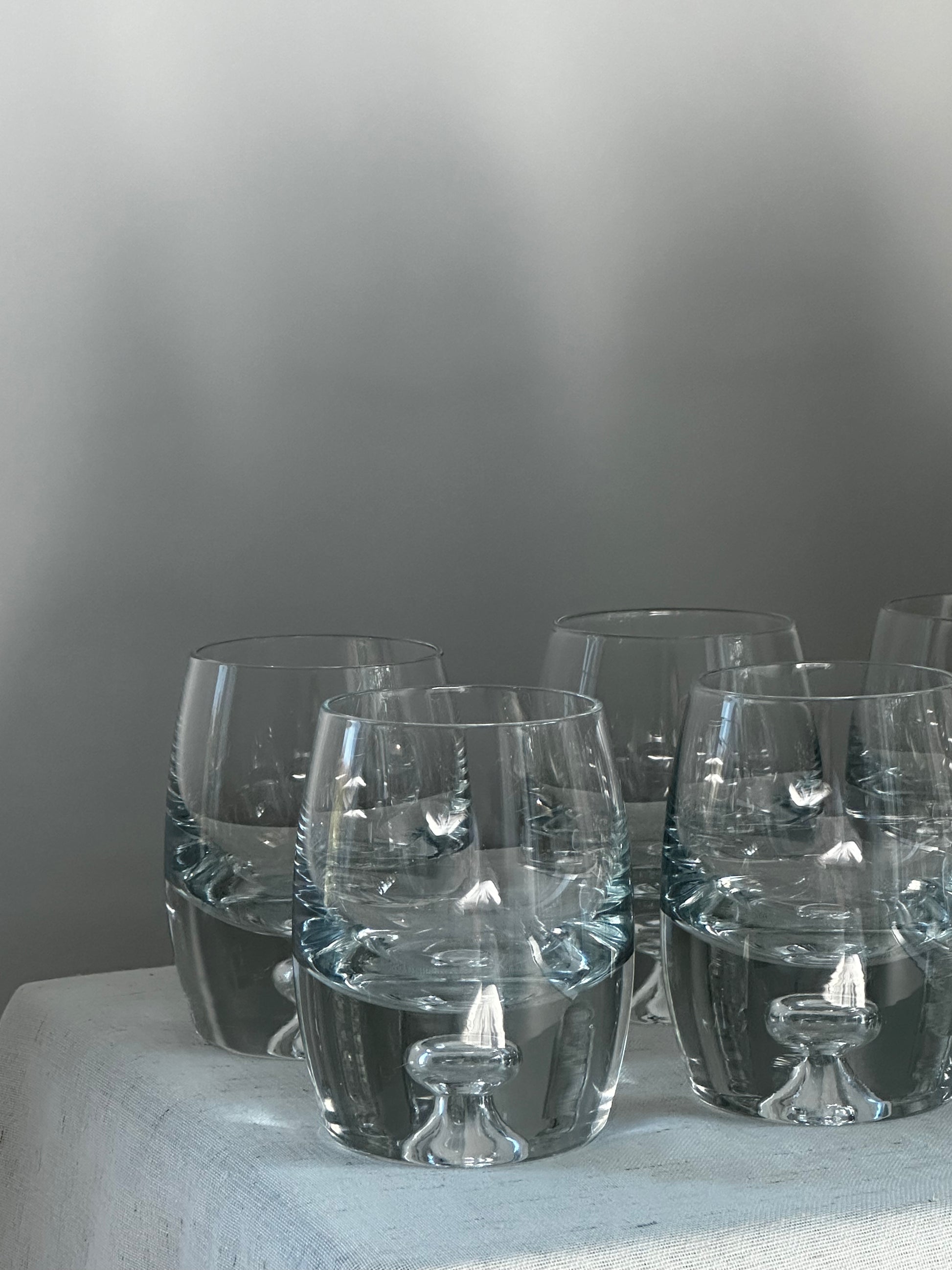 These unique set of crystal whiskey glasses feature a short thick stems with a detail of a dimple in the base. Made from clear crystal material, they are perfect for serving your favorite whiskey.